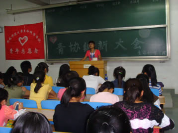 2012年9月8日晚7:30,金沙城js93线路检测中心青年志愿者协会在教学7号楼举行纳新大会。教室内座无虚席,有一百三十多位同学参加此次活动。上一届主席王蕊同学为大会致辞,新一届主席白金金同学对青协日常活动做了相关介绍,之后由各部长介绍了各部室主要工作。同学们热情洋溢,积极活跃,共计纳入新干事三十五位,大会取得了圆满成功。