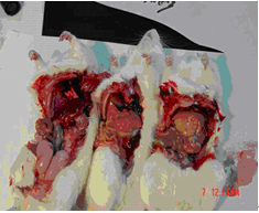 正常动物(左)、服用杏仁油动物(中)、高血脂动物(右)新鲜肝脏