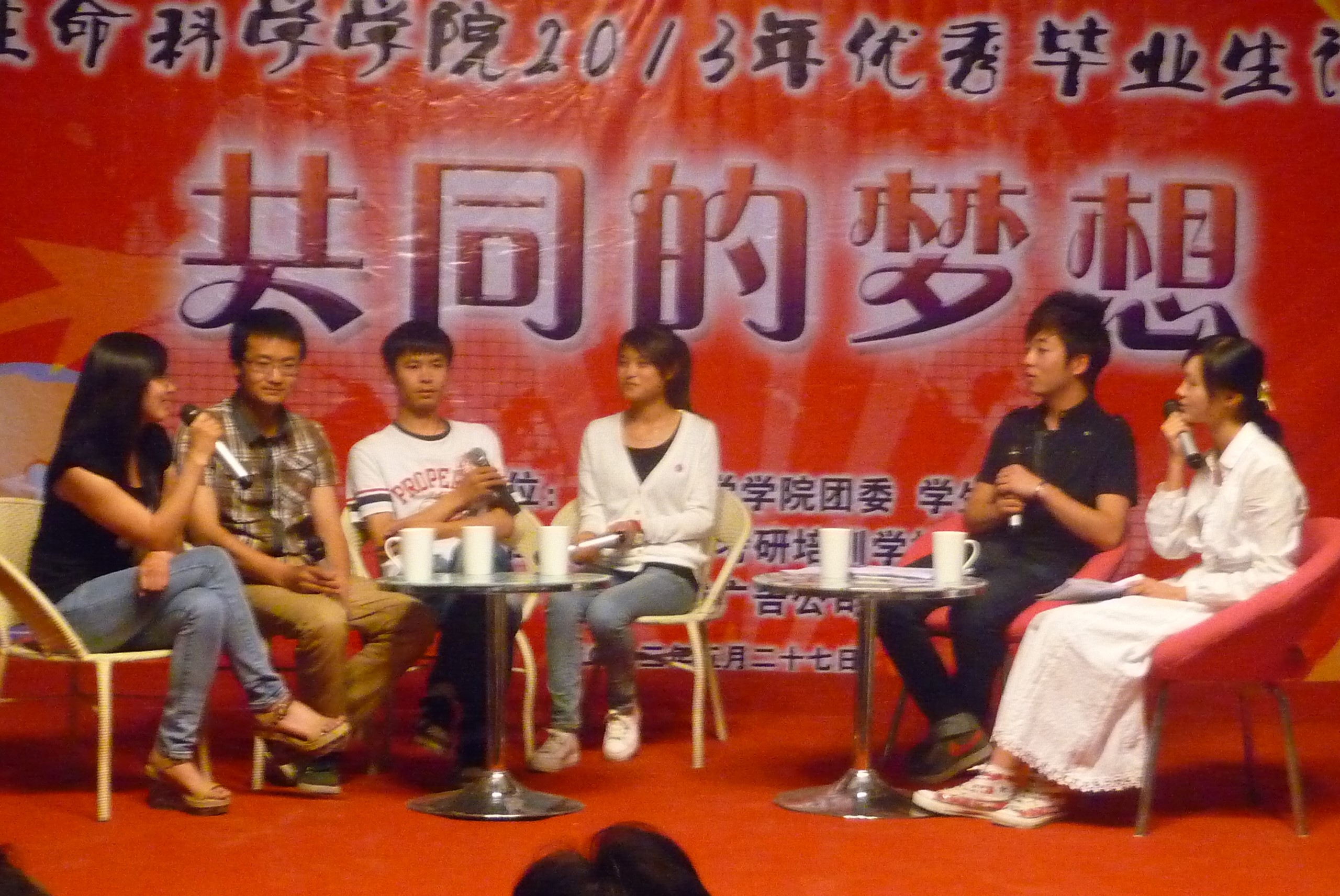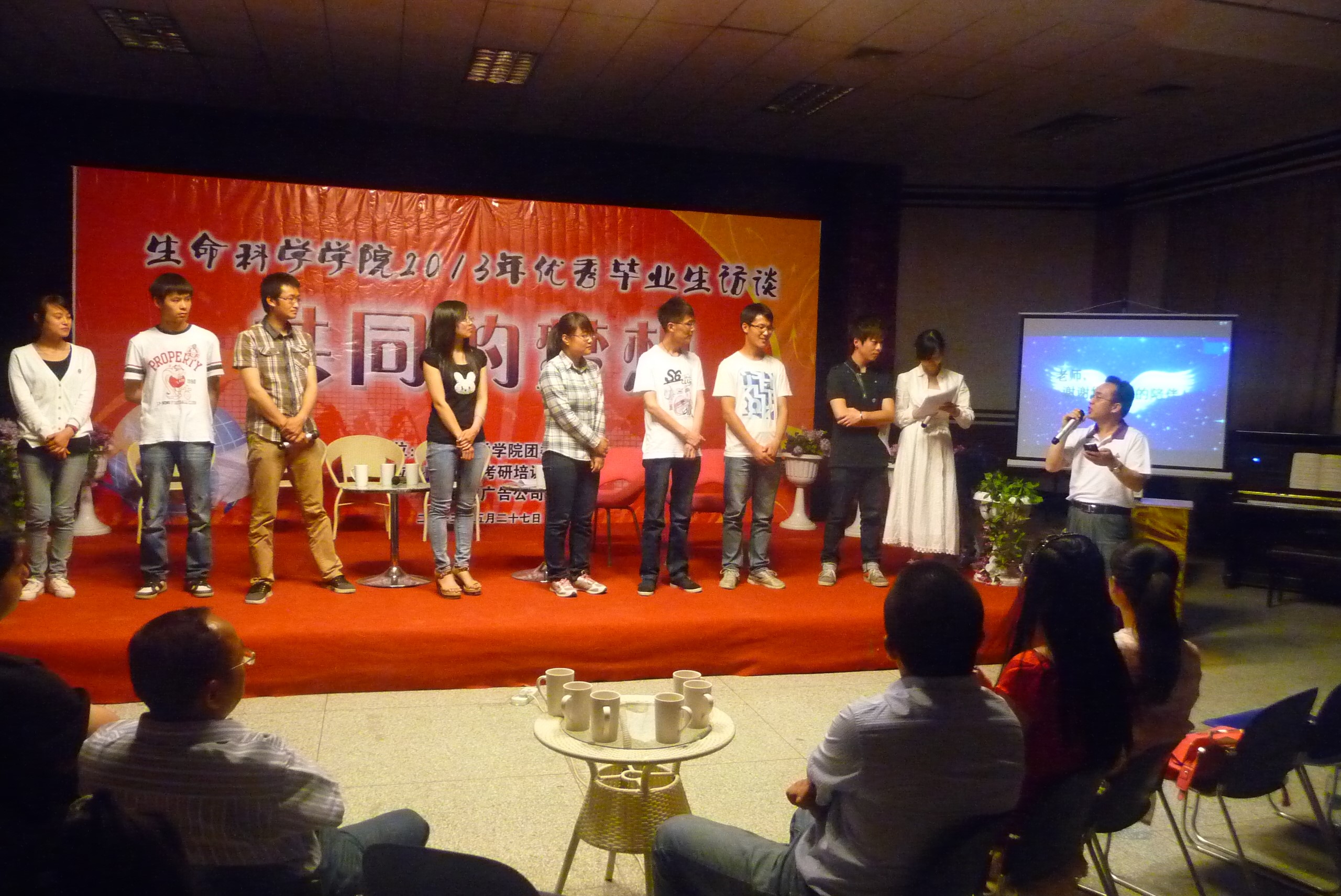 此次访谈共邀请到7位在学习、科研、考研、就业等各方面表现突出的马爱民、黄玉龙、杨琪、冯昭鹏、郑敏英、郑青青、郑兴华等7名09级毕业生代表。在访谈中,各位优秀毕业生与大家一起回顾了他们的成功历程,同时也分享了许多大学成长过程中积累的宝贵经验。活动还设置了观众提问、礼物互赠以及老师和同学们对毕业生的寄语视频播放环节。期间,同学们掌声不断,送出了对各位优秀毕业生最真挚的祝福。最后,李迎新书记对每一位优秀毕业生语重心长的点评也将活动推到了高潮,同时李书记也代表公司对各位毕业生送上了祝福。