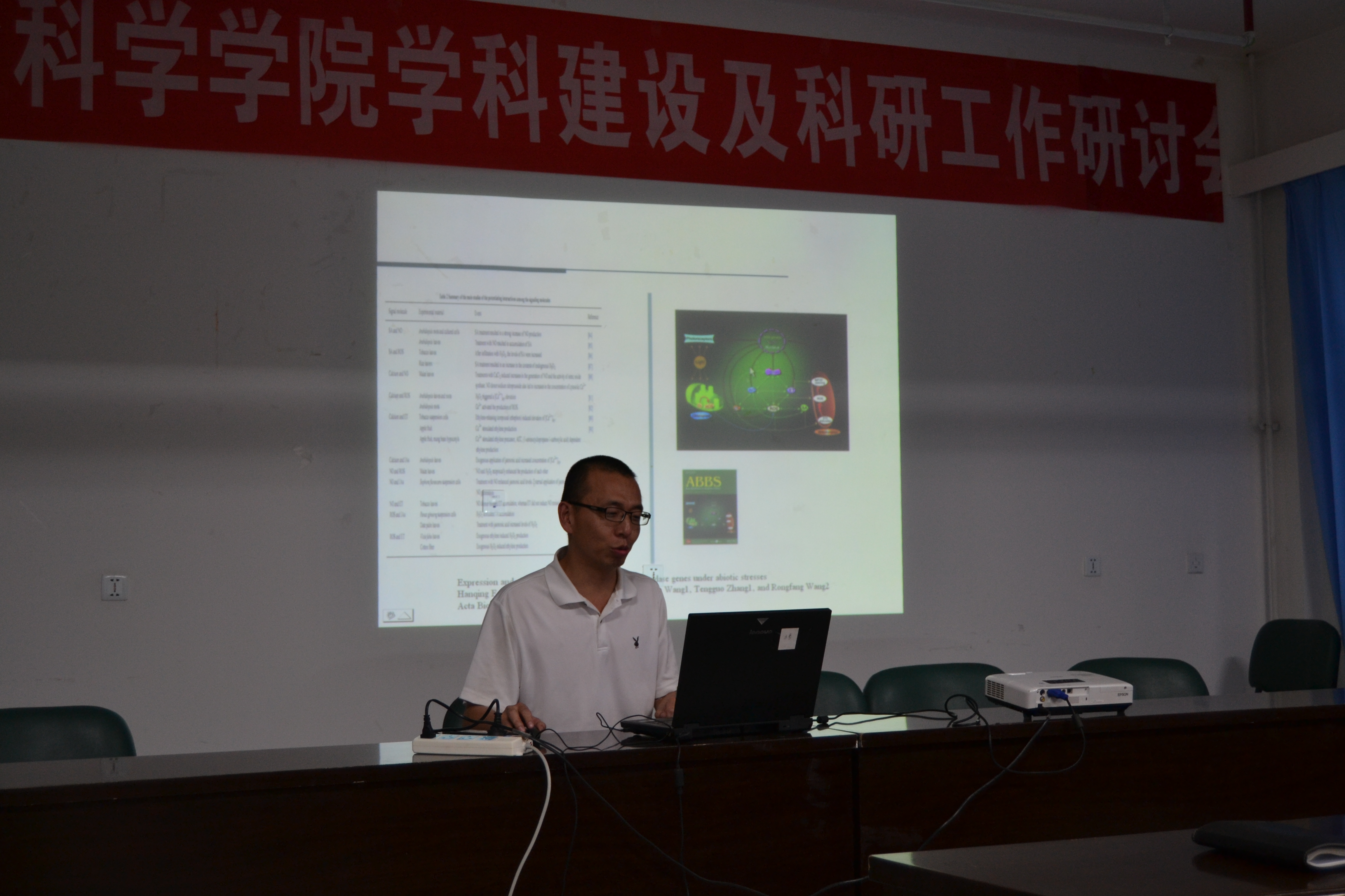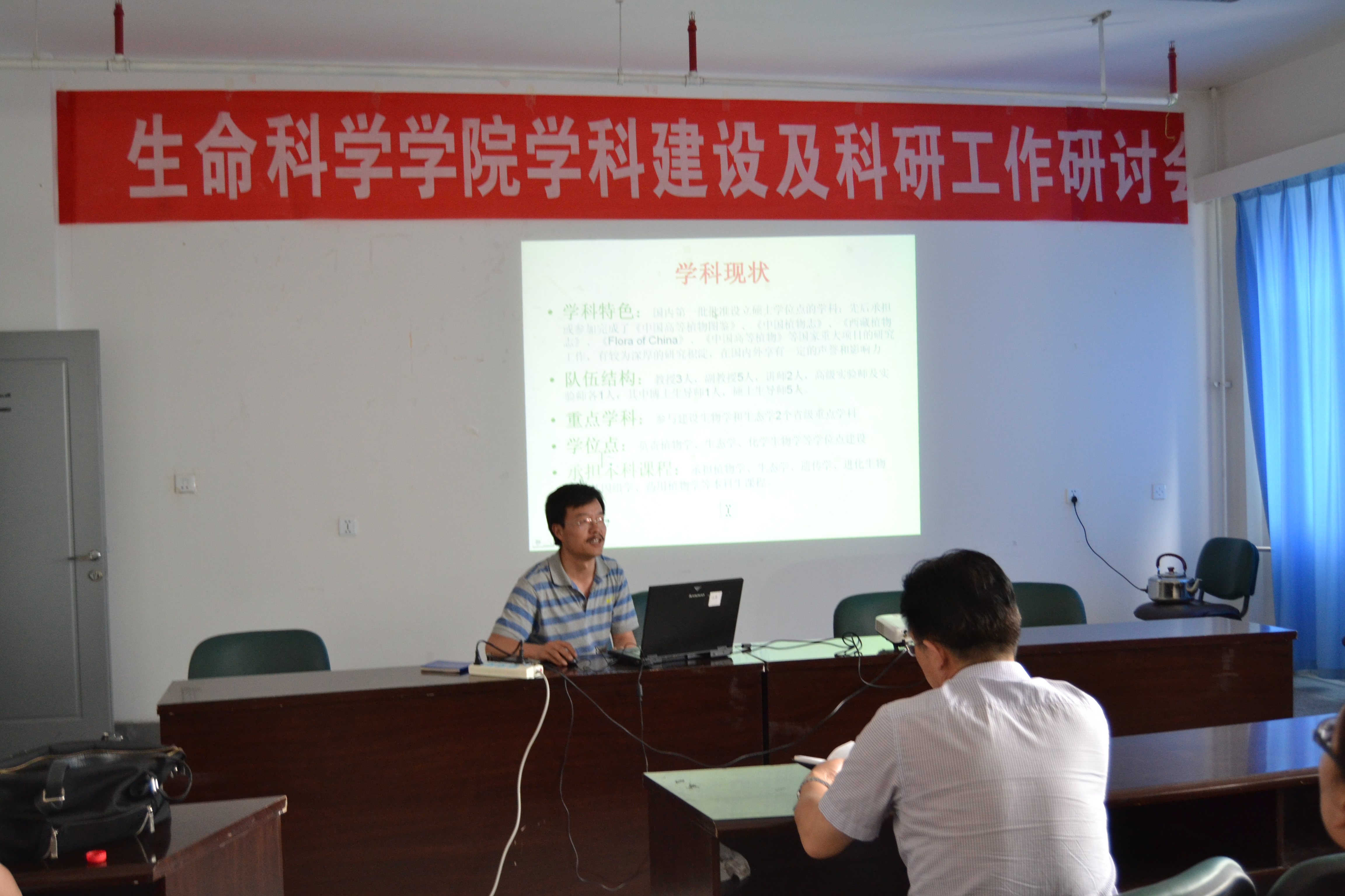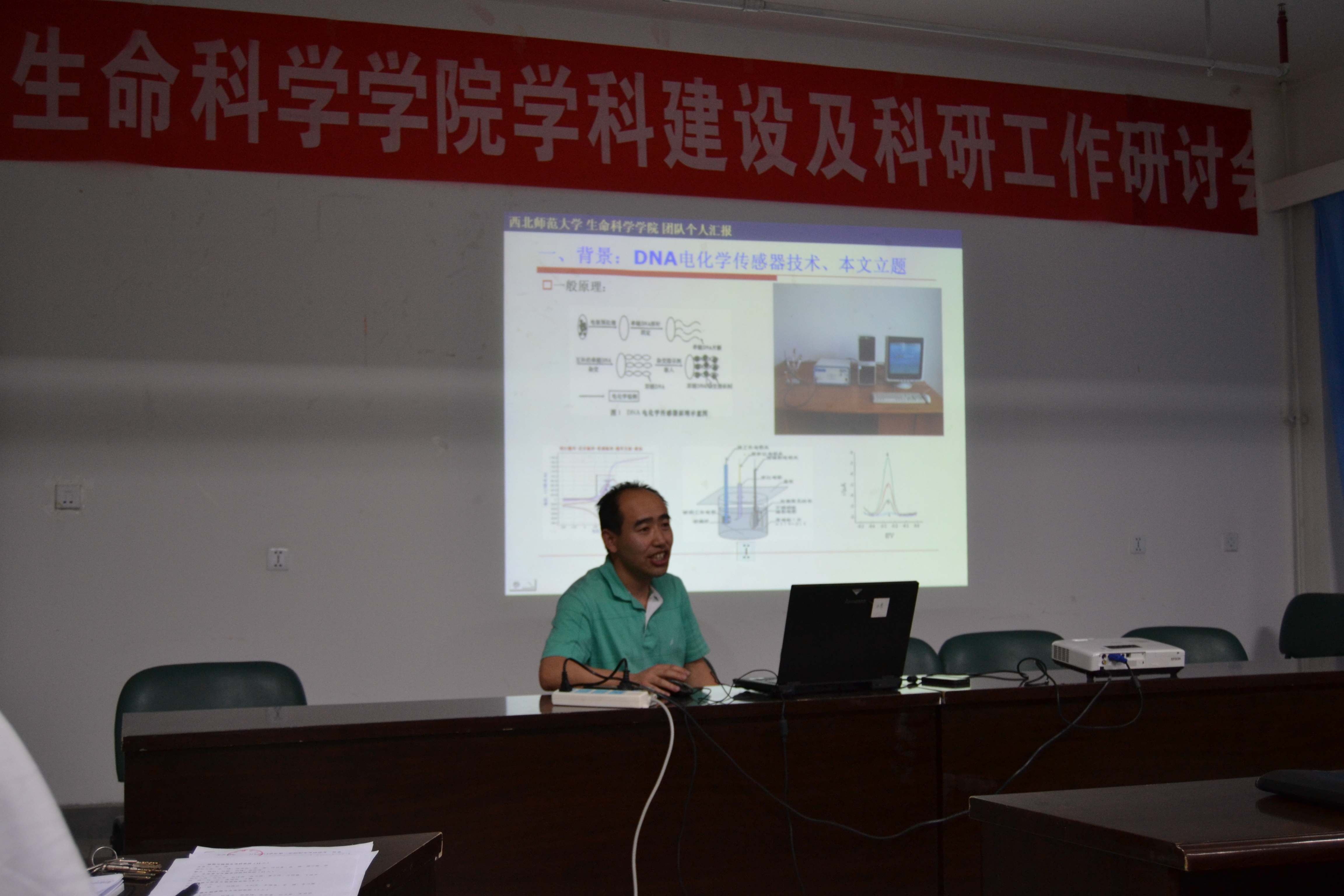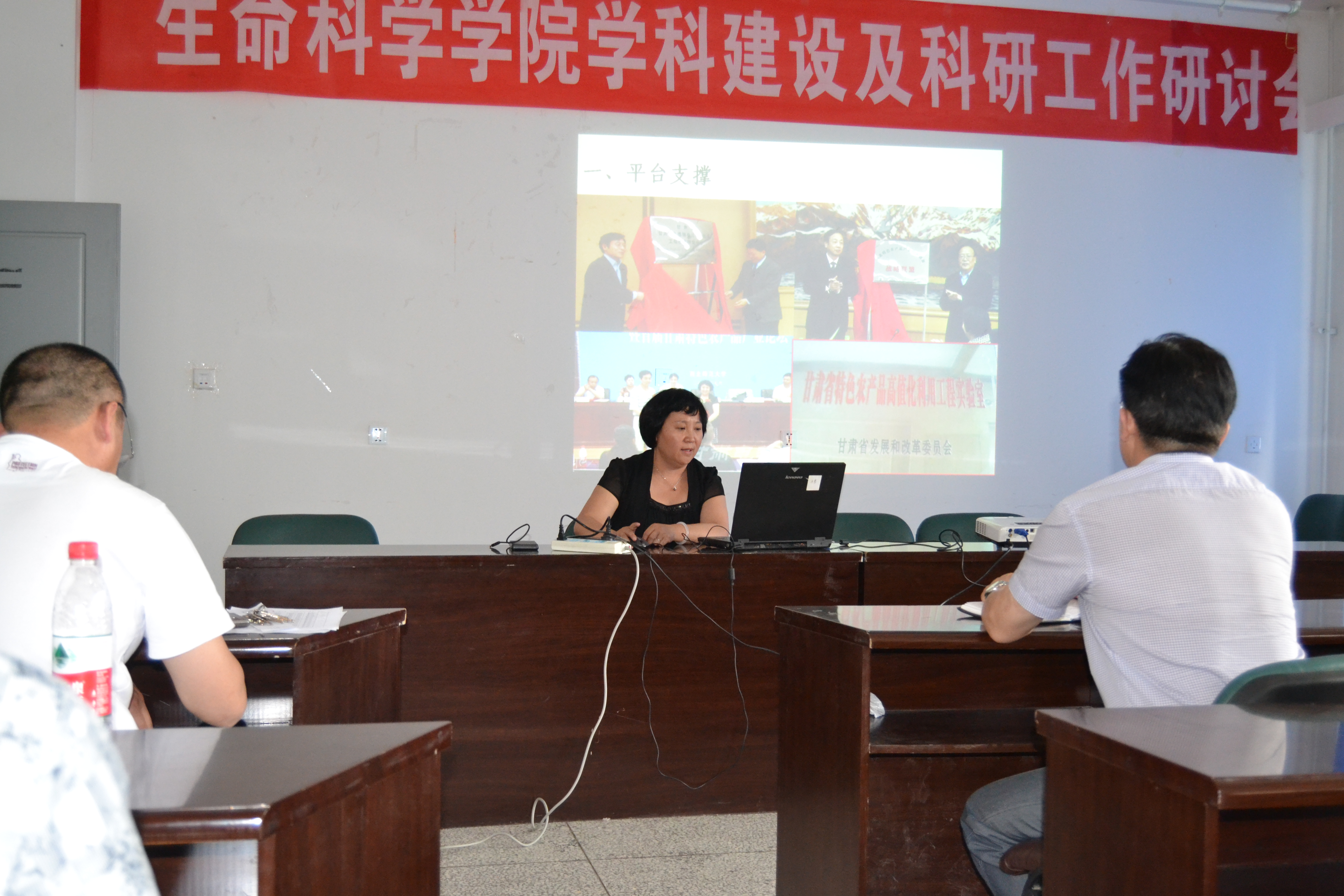 会议分两个阶段进行,第一阶段,植物与植物生态、生态学与多样性、细胞与发育生物学、旱区微生物资源与生态、药学、生理生化与分子生物学等六个团队带头人分别从各自的团队建设、研究工作、未来规划、学术交流及近两年的科研成果等方面作了详细的总结汇报,汇报中,大家对近两年来各团队取得的成绩给与了充分的肯定。同时,对目前存在的问题和困难也做了中肯的批评与自我剖析。第二阶段,六个团队教师代表冯汉青、马君义、于鹏、杨宁、武国凡、李西波等分别做了精彩的学术报告,受到了师生的好评。