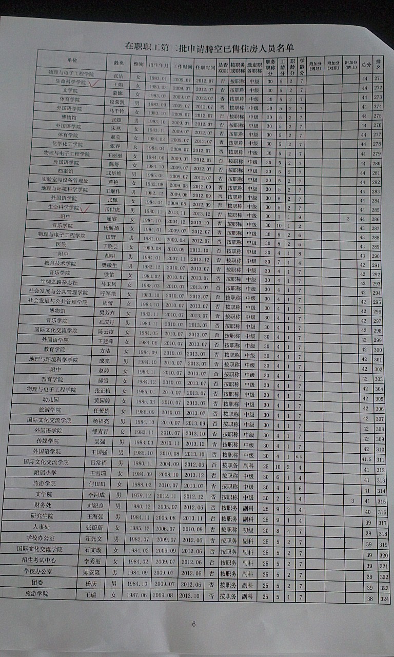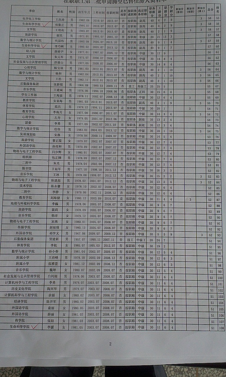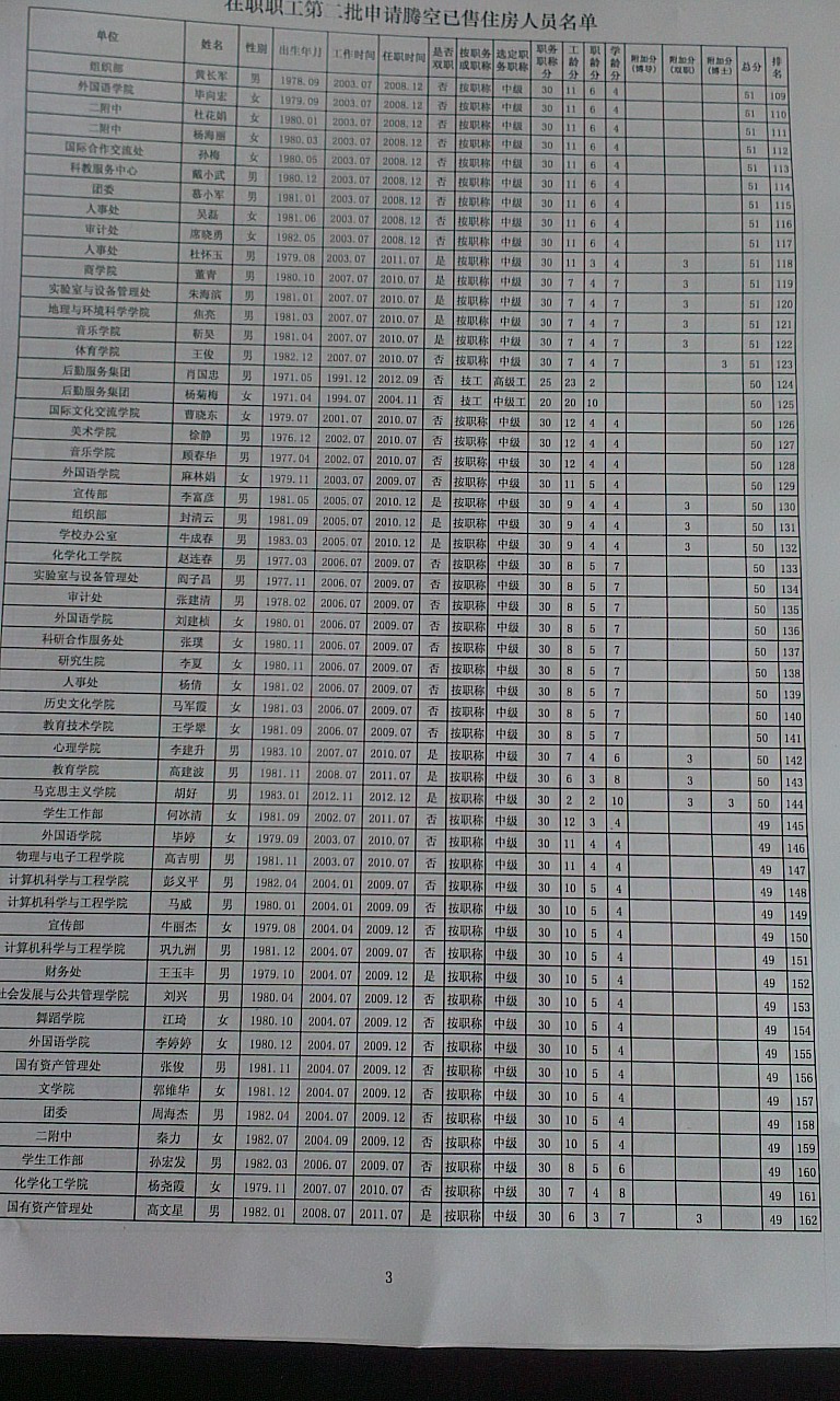 申请第二批腾空房职工排名公示