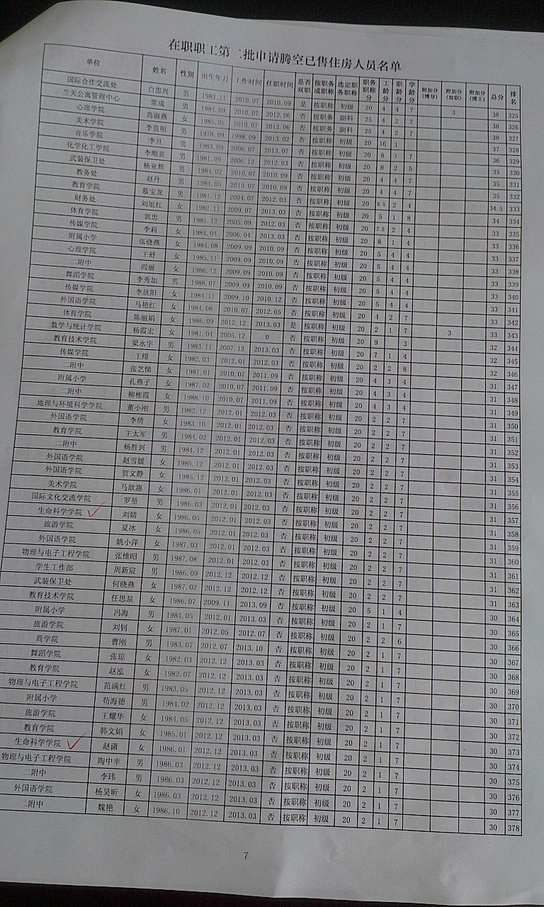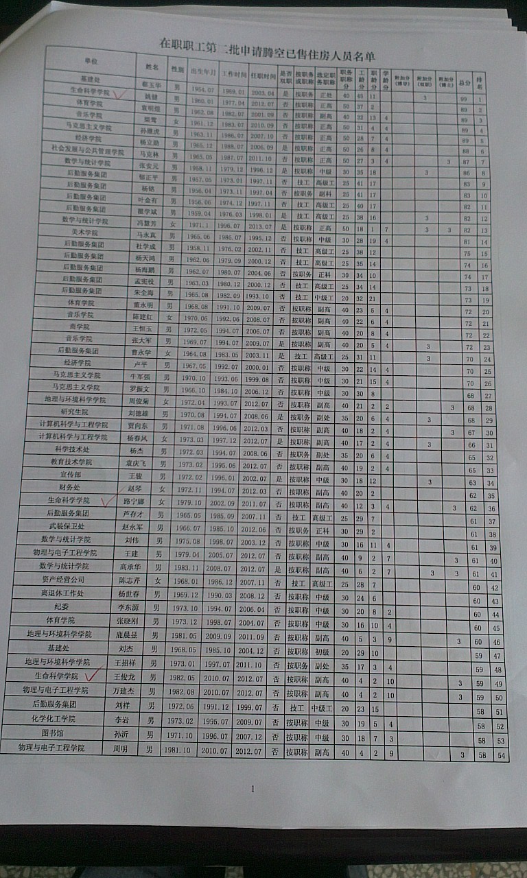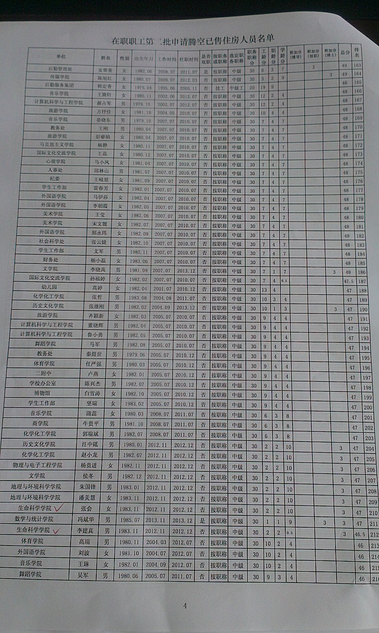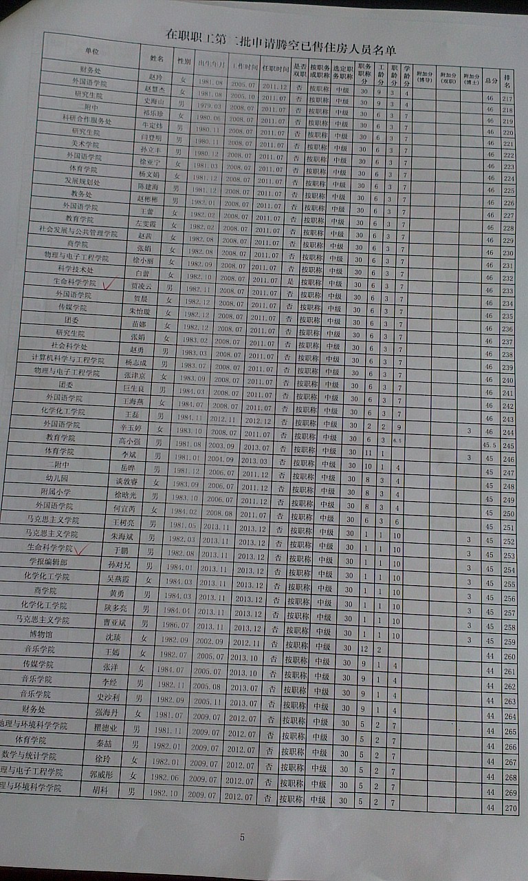 申请第二批腾空房职工排名公示