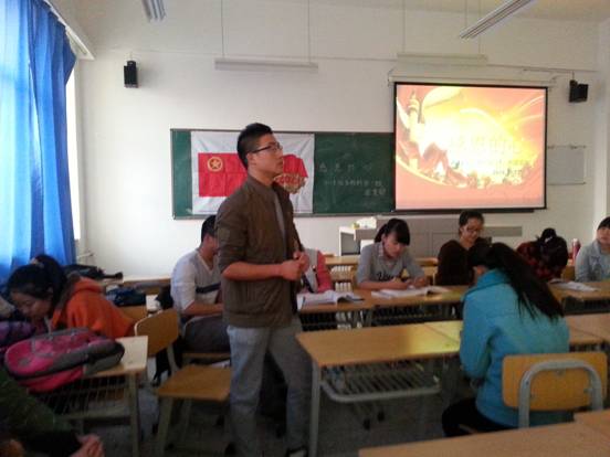 下午16点40分时活动正式开始,活动伊始,同学们全体起立,合唱了团歌。之后,同学们在教室中围坐成一圈,按顺序依次和同学们分享自己曾经经历过的感人的事件,有的同学讲述了高中时期与父母之间的感动瞬间,有的同学简述了大学时与同学与舍友之间的温馨小事,这些事可能很简单很小,但同学们都怀着一颗感恩的心在讲述。在活动最后,同学们一起观看邹越先生的演讲视频,再一次感受如何感恩祖国,感恩父母,感恩老师和感恩自己。