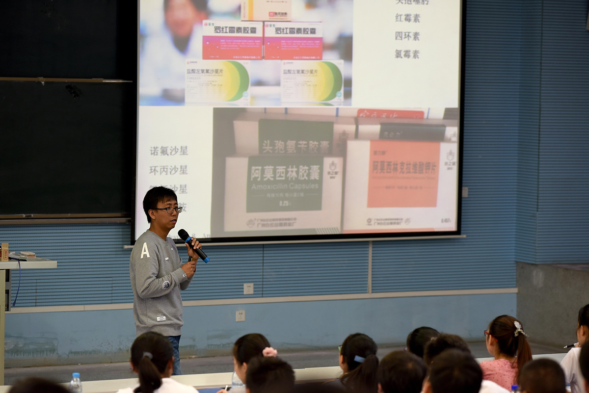 王俊龙老师通过二战三大发明的图片引入本堂课的讲授内容。青霉素、抗生素类药物,再到β内酰胺类抗生素,内容的引入层层深入,环环相扣,使所讲授的内容形成了网状的知识结构。通过实际生活中的用药案例,引导员工去分析药物的设计原理,以及用药过程中的注意事项。王老师讲授思路清晰,通过问答式的讲授,更加注重员工逻辑思维能力的培养。课后,听课教师及员工进行了热烈的讨论,李书记做了总结发言。