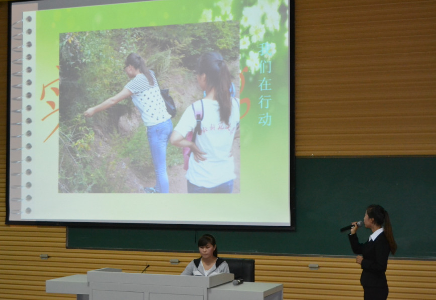 11支社会实践团队假期投身社会实践的一幅幅图片、一张张流淌着汗水的年青脸庞、一个个爬山涉水的身影,让现场观众感受到生科学子的风采和洋溢的青春活力。
