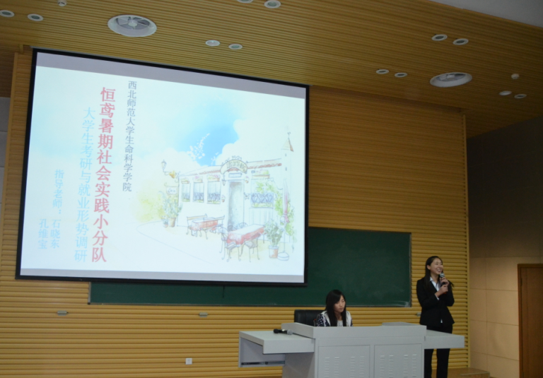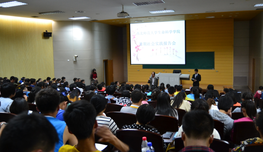 参加2015年暑期社会实践的各团队负责人依次通过播放PPT和视频短片的形式,对各自团队的实践过程及取得的成果进行展示和陈述:“静宁支教”团队赴平凉市静宁县红寺乡寺岔小学义务支教,体验并反思如何当一个好老师;“beyond”团队赴平凉市崆峒区进行支教及调研,在社会实践中锻炼自己,“超越”自我;“安全环保者”团队赴天水市甘谷、武山两县进行蔬菜种植农药残留的调研,由此延伸出微生物菌剂农药的研究课题;“恒鸢”团队以老员工就业及考研为调研主题,深入兰州市的多家企业、科研院所进行调研,了解企业用人需求,为同学未来的考研及就业选择提供参考;“正杰·爱之行”团队赴天水市张家川自治县开展关爱留守儿童活动,在当地政府和爱心人士的帮助下,给留守儿童送去关爱和温暖;“沐风之旅”团队在公司退休老师马正学教授的倾力支持下,先后赴兰州崇德文化服务中心、崆峒山进行支教及环保调研活动,同学们体味“爱他人”、“人与自然和谐相处”给自身带来的愉悦;“雷厉风行”团队赴在兰大学、科研院所开展就业、考研调研,短短几日也收获颇多。其他如赴平凉开展药用植物调研的“王不留行”团队,赴酒泉市瓜州县进行黑枸杞调研的“杞缘”团队,赴陇南市西和县进行抗生素使用情况调研的“阳光百草行”,赴天水市秦安县进行桃子的种植及销售状况调研的“桃原之行”团队,都结合实际,开展了大量的调研工作,取得了一定的调研成果。