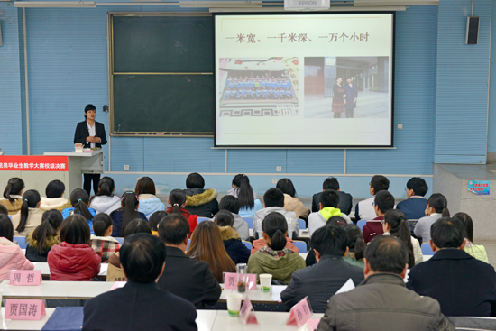 潘婷同学在记者采访时说,“一米宽,一千米深,一万个小时”是她的实习感悟,也是她参加完此次教学技能大赛后内心感受最深的一点。高中的讲台不过一米的宽度,却承担着一千米深的责任,这意味着她要付出一万个小时甚至更多的时间去肩负起这个责任。 “多年后,你是否还会保持一份对教师这个职业的热情?你是否真的喜欢教师这个职业?”潘婷做出了最铿锵有力的回答:“一旦选择,你就必须为之付出,肩负起一份责任。”