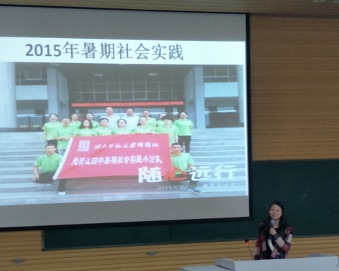 潘成芳学姐首先给同学们展示了几组数据,内容代表了自己的几个阶段,她以独特的感受描述着这些数据的含义,现场同学目不转睛,认真聆听学长讲述。潘成芳学姐对现场同学说,“做事不要总想着结果,要多看看过程”。她自己坚持每天看一篇文章,从不间断,字里行间的哲学智慧让她受益终身。