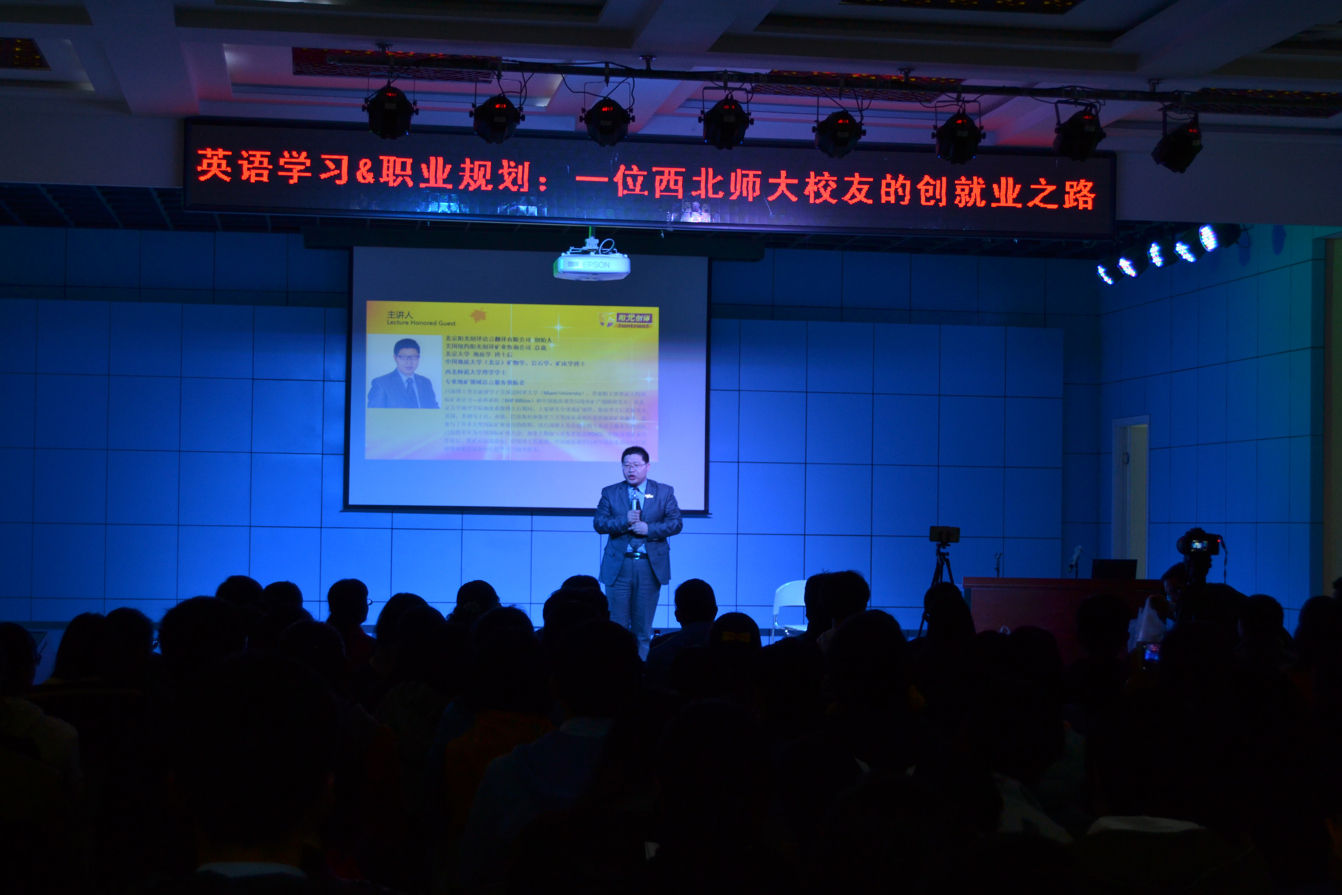 3月23日晚,应金沙城js93线路检测中心邀请,阳光创译创始人、北京阳光创译语言翻译有限公司董事长吕国博士来公司作了题为《英语学习与职业规划》的报告,分享自己在英语学习和就业创业方面的心得。西北师大科技处处长莫尊理教授、金沙城js93线路检测中心经理孙坤教授等院领导及全校师生近300人参加了报告会,报告由金沙城js93线路检测中心教授宁应之主持。报告会开始前,公司领导向吕国博士颁发聘书,聘任吕国博士为金沙城js93线路检测中心老员工“生活、学业、就业创业”指导室高级咨询师。