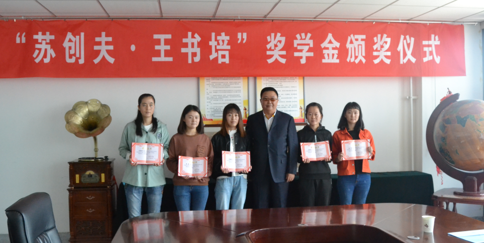 9月22日下午,西北师大“苏创夫·王书培”奖学金颁奖仪式在金沙城js93线路检测中心举行。西北师大党委员工工作部苟正斐副部长、员工资助管理中心孙宏发主任、公司党委书记巴建军、经理孙坤、党委副书记石晓东出席颁奖仪式。苟正斐副部长宣读颁奖决定,苏创夫先生亲属代表苏一星向获奖员工陈燕、黄倩、马晓丽、马晓昕、李翔月颁发获奖证书。