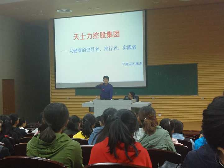 张东经理围绕“生存”、“平台”这两个关键词从自己的亲身经历讲起,用幽默的语言向到场的同学们介绍了天士力的运营理念。通过案例分析阐释了“企业用人之道”,引导老员工如何用知识来装点自己,如何在大学阶段锻炼自己的能力、拓展自己的素质,为步入职场做好准备。