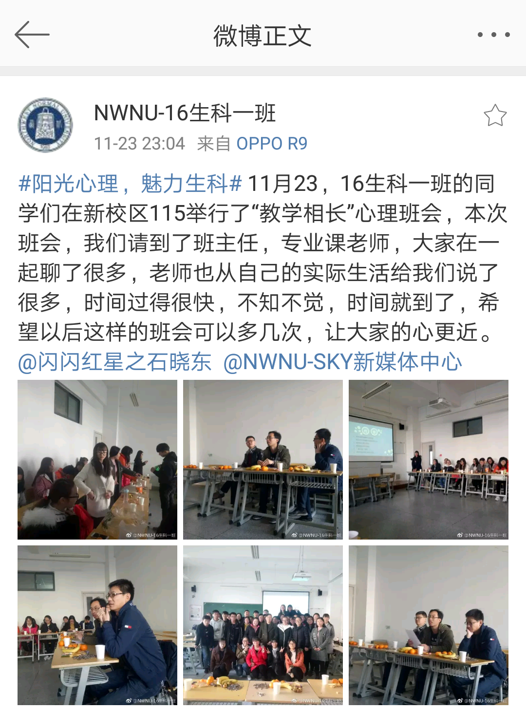 在“教学相长”主题班会举办前后,公司各班级利用QQ、微信、微博等平台实时推送活动开展情况,师生积极参与互动讨论,形成了良好的线上交流氛围。