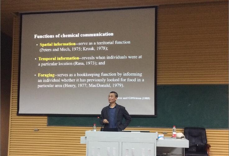 报告中,刘教授详细介绍了近25年在卧龙大熊猫保护研究中心的研究工作,大熊猫保护现状,化学通讯在大熊猫的觅食、繁殖、育幼和保护中的作用及其机制等相关内容。