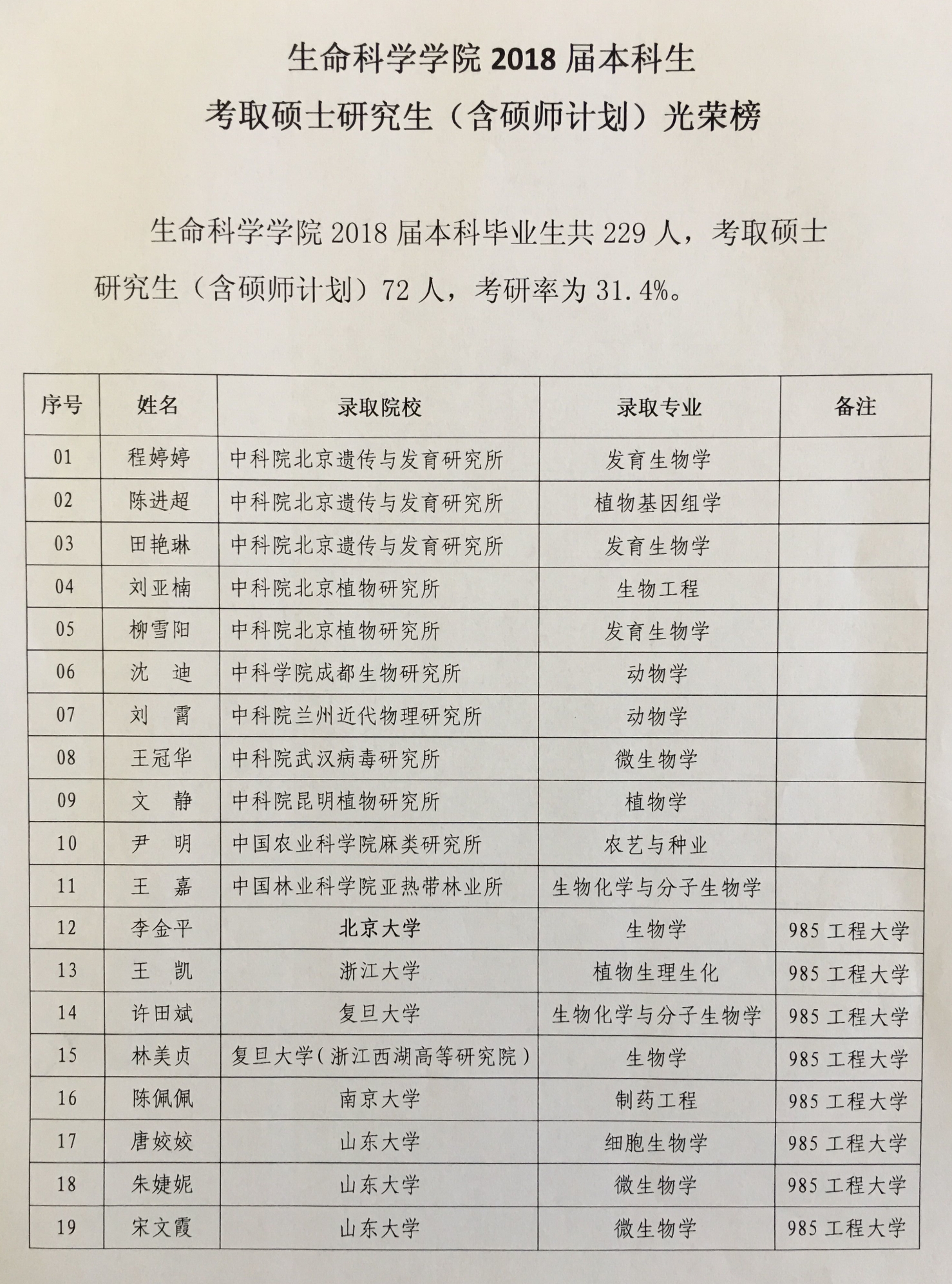 金沙城js93线路检测中心2018届本科毕业生考研光荣榜