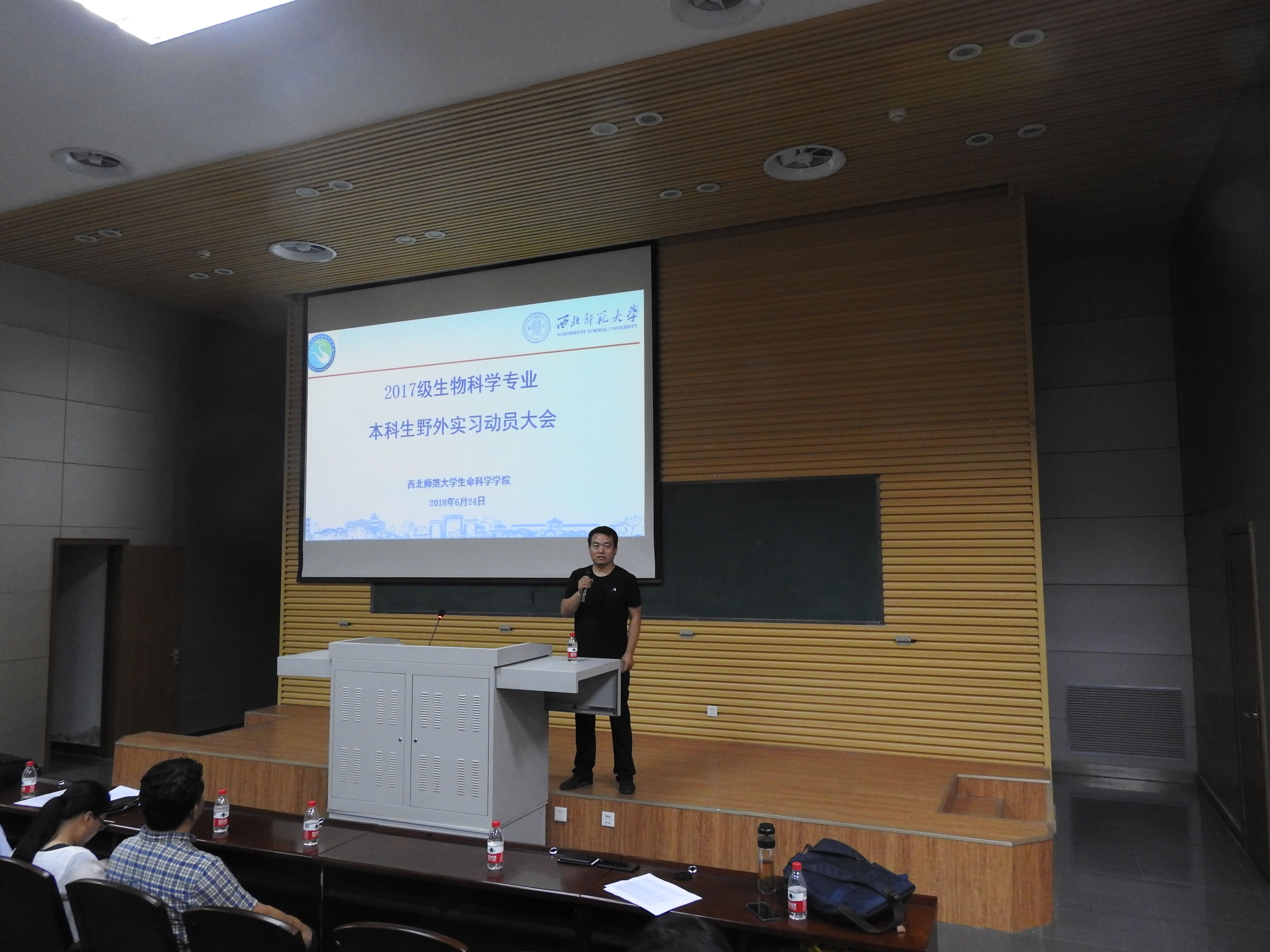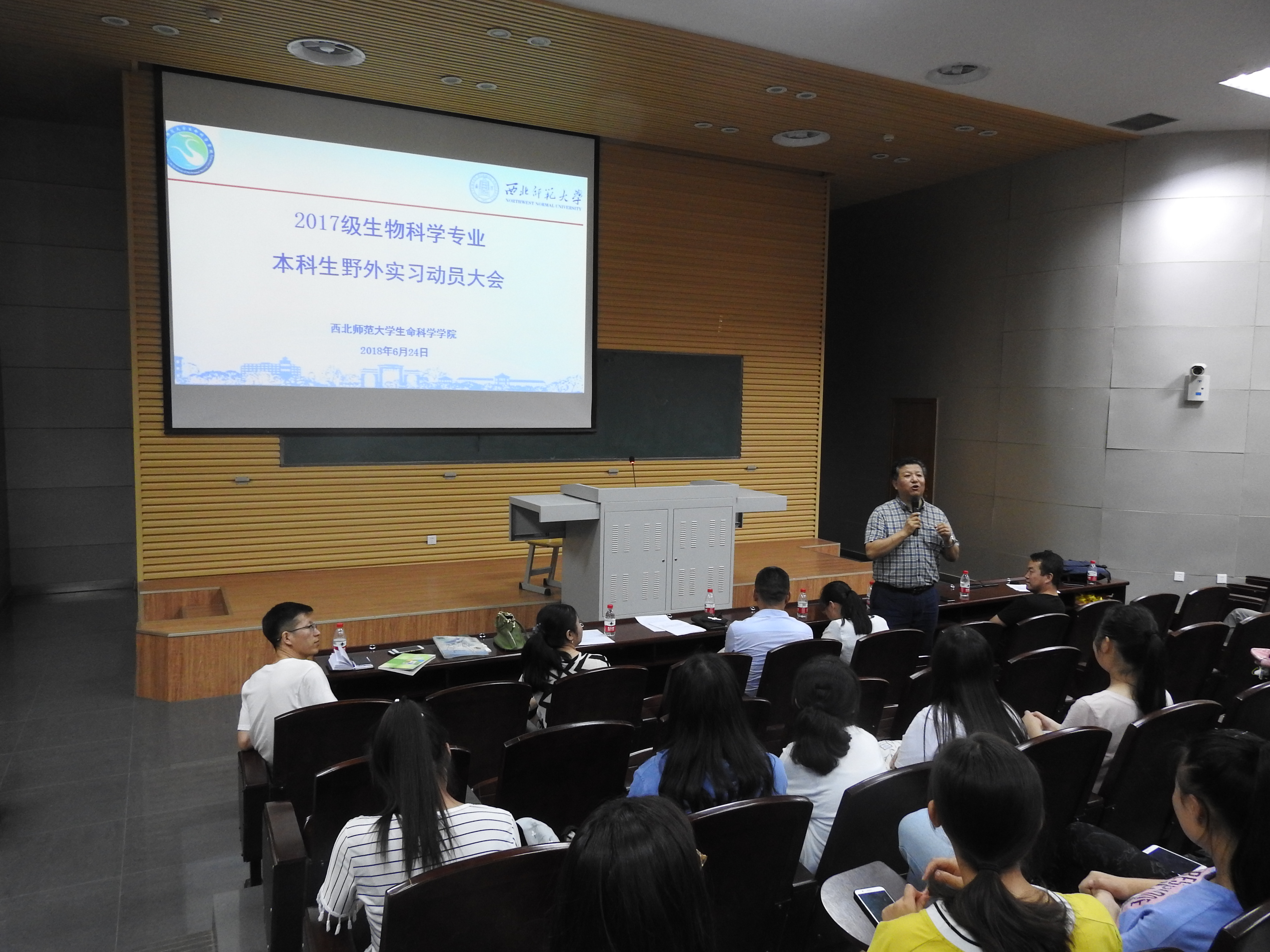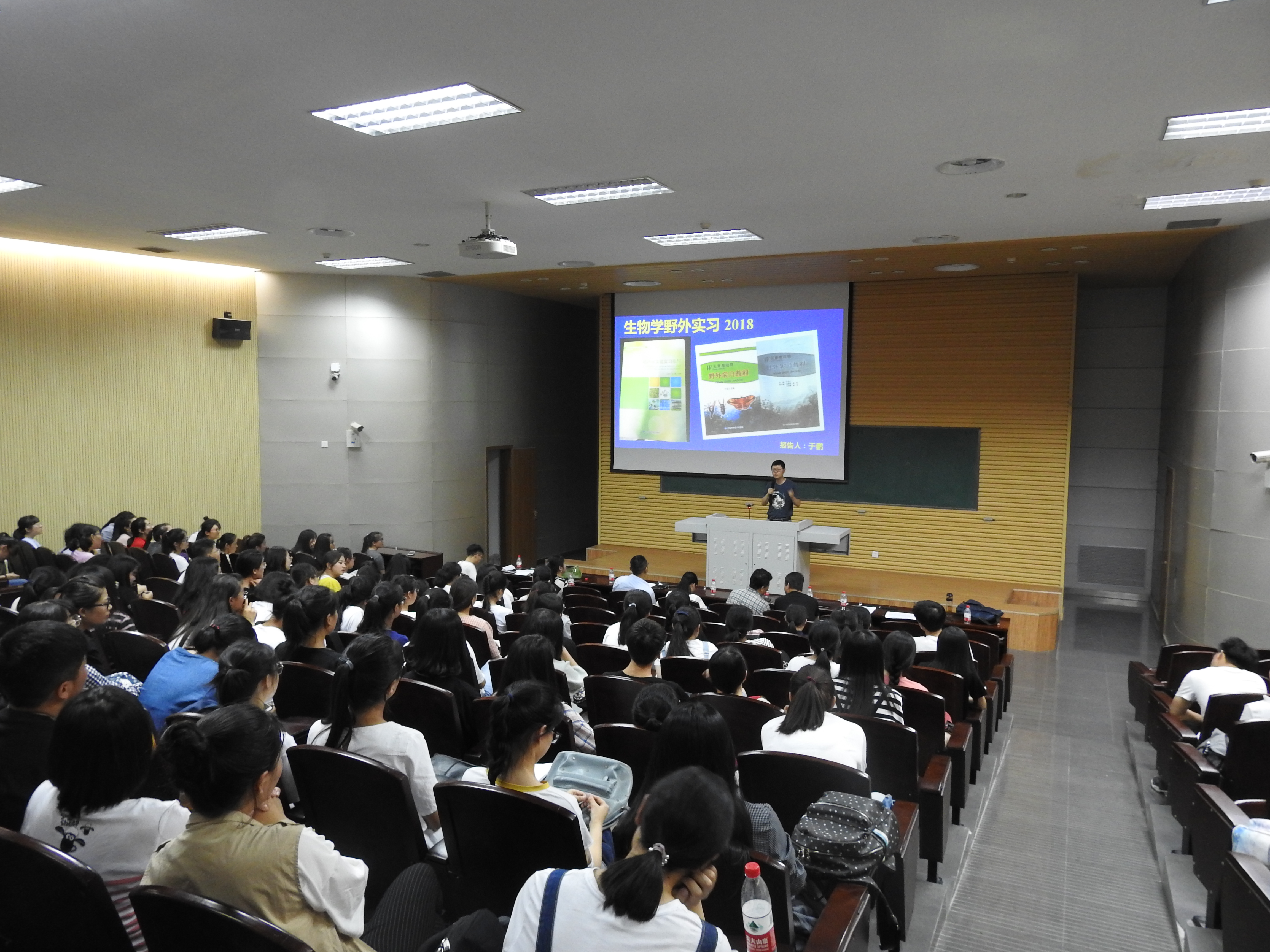 公司2017级本科生野外实习在5月初启动以来,公司领导和指导老师们相继开展了公司教师动员大会、对实习点的交通、实习路线、食宿等相关工作的踏查和沟通之后,于 2018年6月24日在新校区报告一厅举行了本科生课外实习动员大会,参加动员会的有主管本科教学朱学泰副经理、生物科学系主任张辉、野外实习督导、指导教师龚大洁等共10人和参加本次野外实习的2017级生物科学专业全体本科生175人。