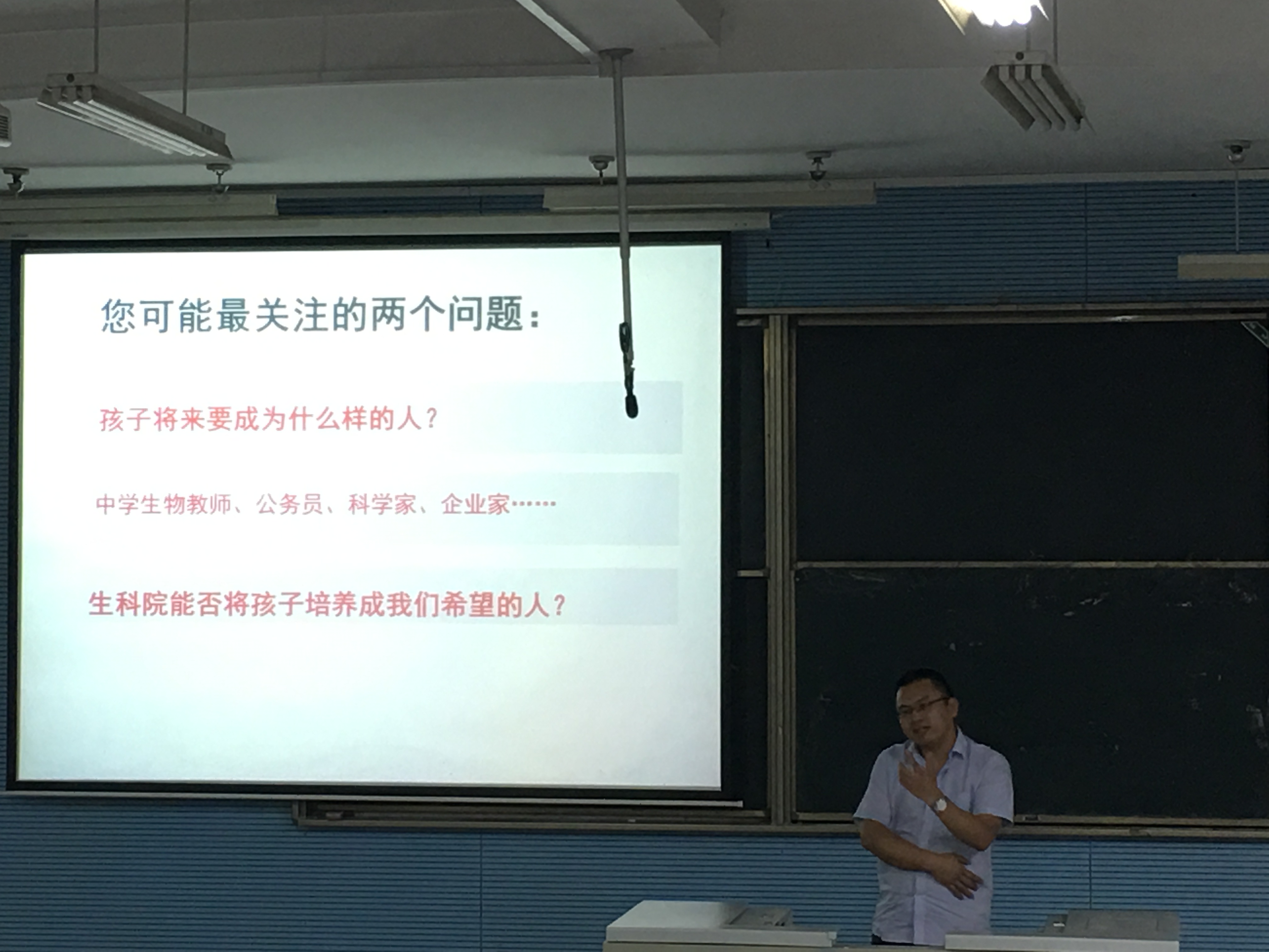 9月3日晚,金沙城js93线路检测中心在校本部教学十号楼举行新生家长见面会,公司党委书记巴建军老师,副经理朱学泰老师,党委副书记石晓东老师及2018级云亭班班主任李建真老师、生物科学类1班班主任马宗旺老师、生物科学类2班班主任张会老师、生物科学3班班主任王小勇老师、制药工程班班主王风霞老师等与近百名新生及家长参加见面会。见面会首先由石晓东副书记向参会的家长以及同学么依次介绍了公司领导及各位班主任。随后,公司党委书记巴建军老师代表公司表达了对新生及家长的欢迎,同时为新生及家长简略介绍公司基本情况,巴书记希望每一名新同在大学的学习、时间管理、人际交往等方面及时调整心态,尽快适应大学学习生活,积极践行自我管理、自我服务、自我教育、自我监督,通过大学四年的学习不断完善提高自己。