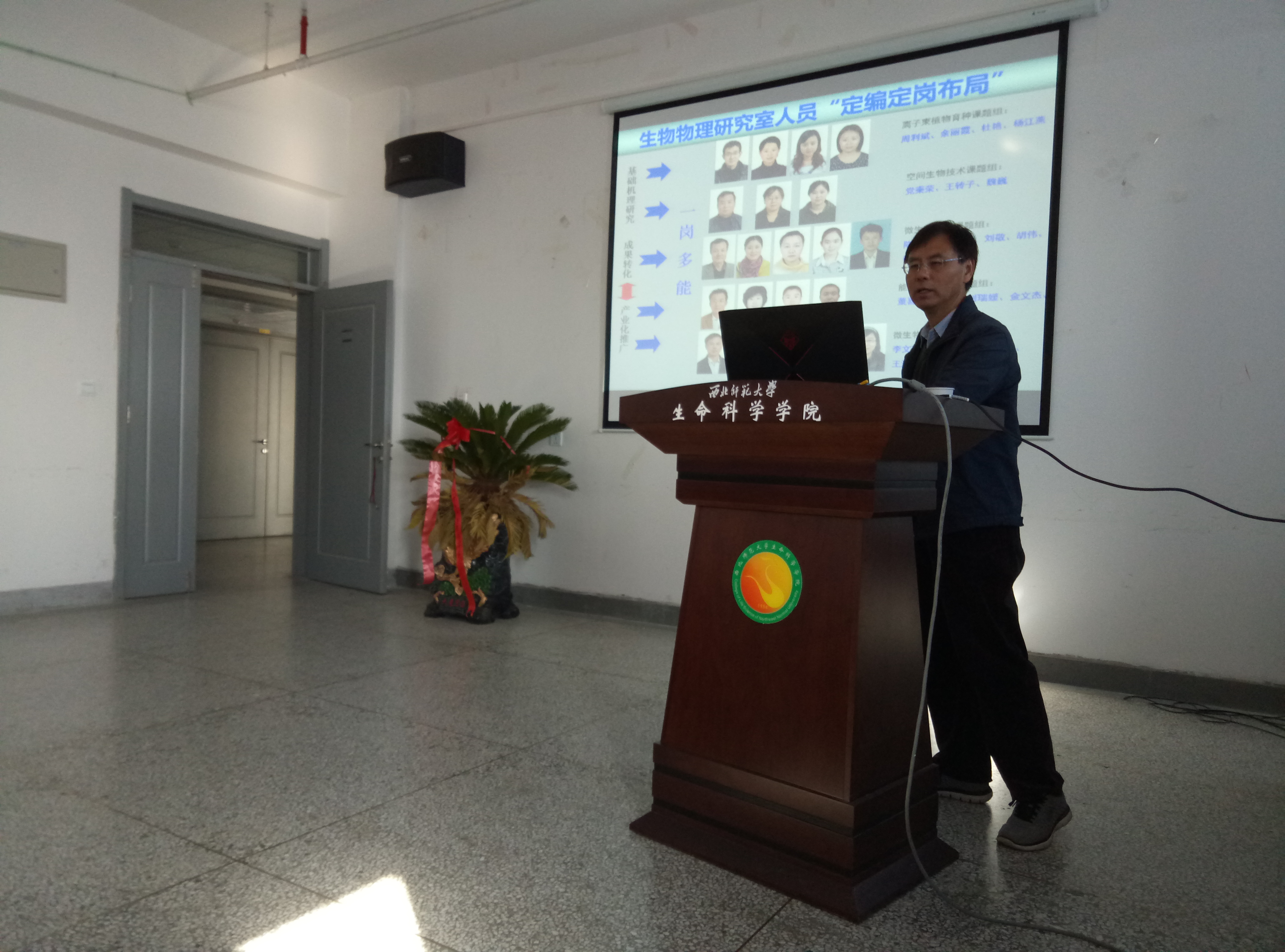 报告中,李文建教授介绍了重离子加速国家实验室和其研究所的发展历史和研究领域,对重离子加速器及诱变育种的先进性、作物育种及推广、微生物育种及转化、甜高粱的生物产业和空间辐射生物等内容做了重点阐述,并针对研究生的培养作了有意义的经验分享。报告结束后,李教授和与会师生进行了相关问题的探讨。