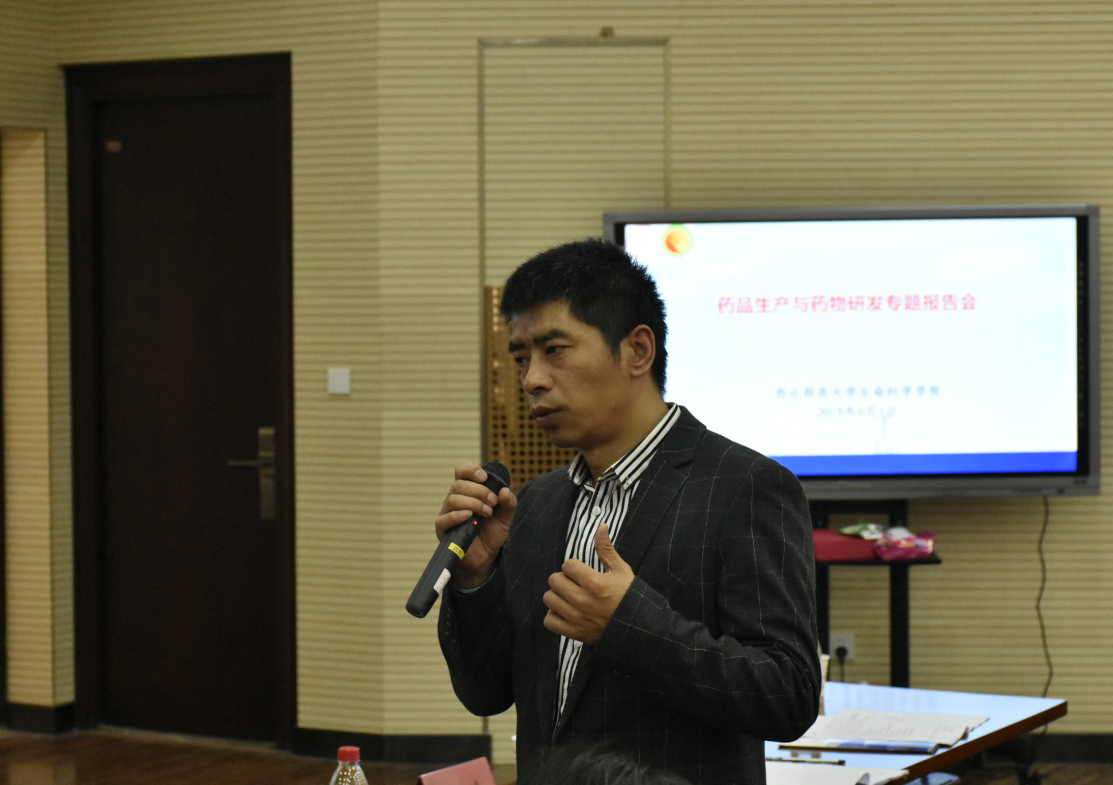 上午8∶30,药品生产与药物研发报告会准时开始。报告会分别由公司副经理孔维宝副教授、生物技术系系主任武国凡副教授和制药工程系系主任马君义教授主持。副经理孔维宝副教授致辞。六位企业家围绕“药品生产与药物研发”分别以“抗高原缺氧损伤研究平台、关键技术体系与肉苁蓉相关药物研究”、“药物基因组学与个体化治疗和药物研发”、“制药企业药品质量控制”、“小柴胡颗粒的生产过程解读”、“药品数据完整性”和“制药生产质量管理与设计”为题结合各自企业的生产管理、质量管理、药物研发、设备与工艺验证管理做了精彩的报告并与现场师生进行了良好互动。