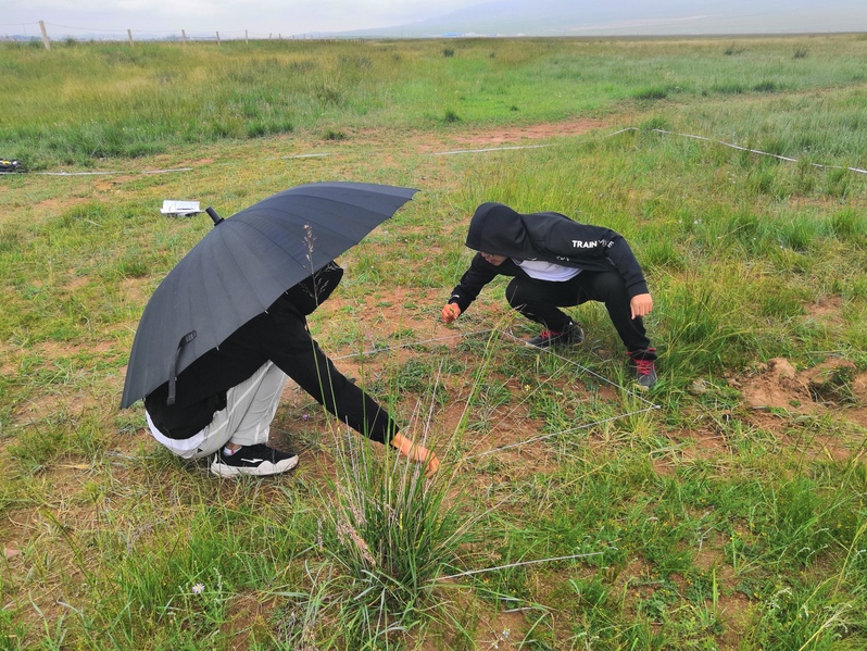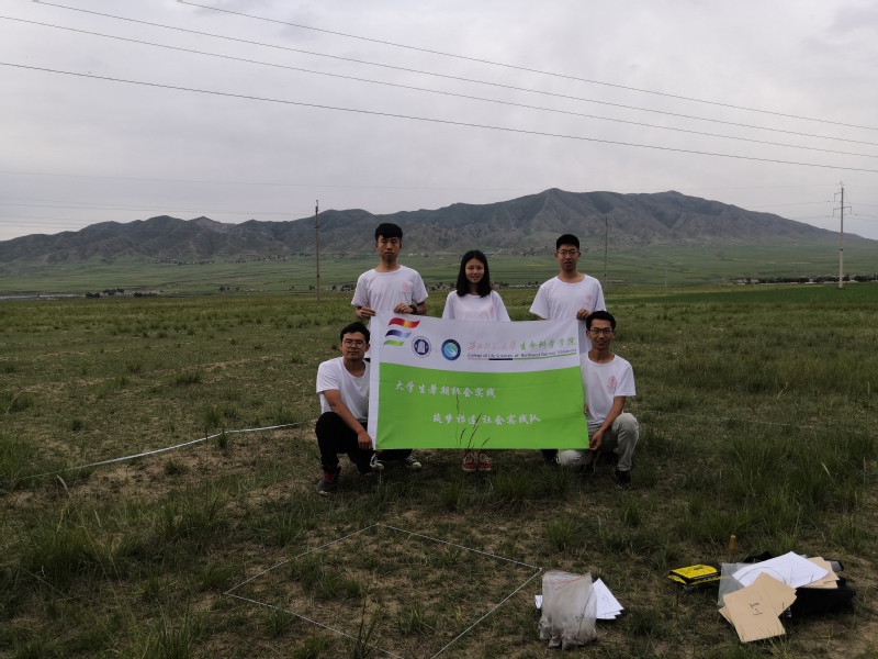 经过一天的跋涉后,队员们不敢有一丝懈怠,第二天便直奔目的地—焉支山森林景区。实践团主要以焉支山景区和山丹军马场的草场物种多样性进行对比分析,同时对焉支山景区的乔灌木物种多样性进行实地调研工作。焉支山的调研方式同马场基本一致。进入景区后,根据山上海拔梯度选取五个坡向一致的代表性样地,进行拉样方、数物种、测株高,量冠幅等一系列作业,通过小样方获取的数据,估算出整个样地的物种数量。同时,也在焉支山的每个样地内采集等量的土样,带回实验室进行晾干处理。待回到实验室后,对所采集的土样进行了测样。