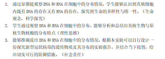 在第三部分案例分析中,主持人马蕊向大家展示了一篇自己撰写的教案文章,其内容是高中必修一《观察DNA和RNA在细胞中的分布》。同学们各抒己见,积极为这篇教案的教学目标提出了自己的修改意见。普遍认为,这篇教学目标稍显晦涩,不适于中员工,应适当精简。其次,概括范围不够全面,没有将染色剂及显微镜的使用包含进去,对教材内容把握不够精确。