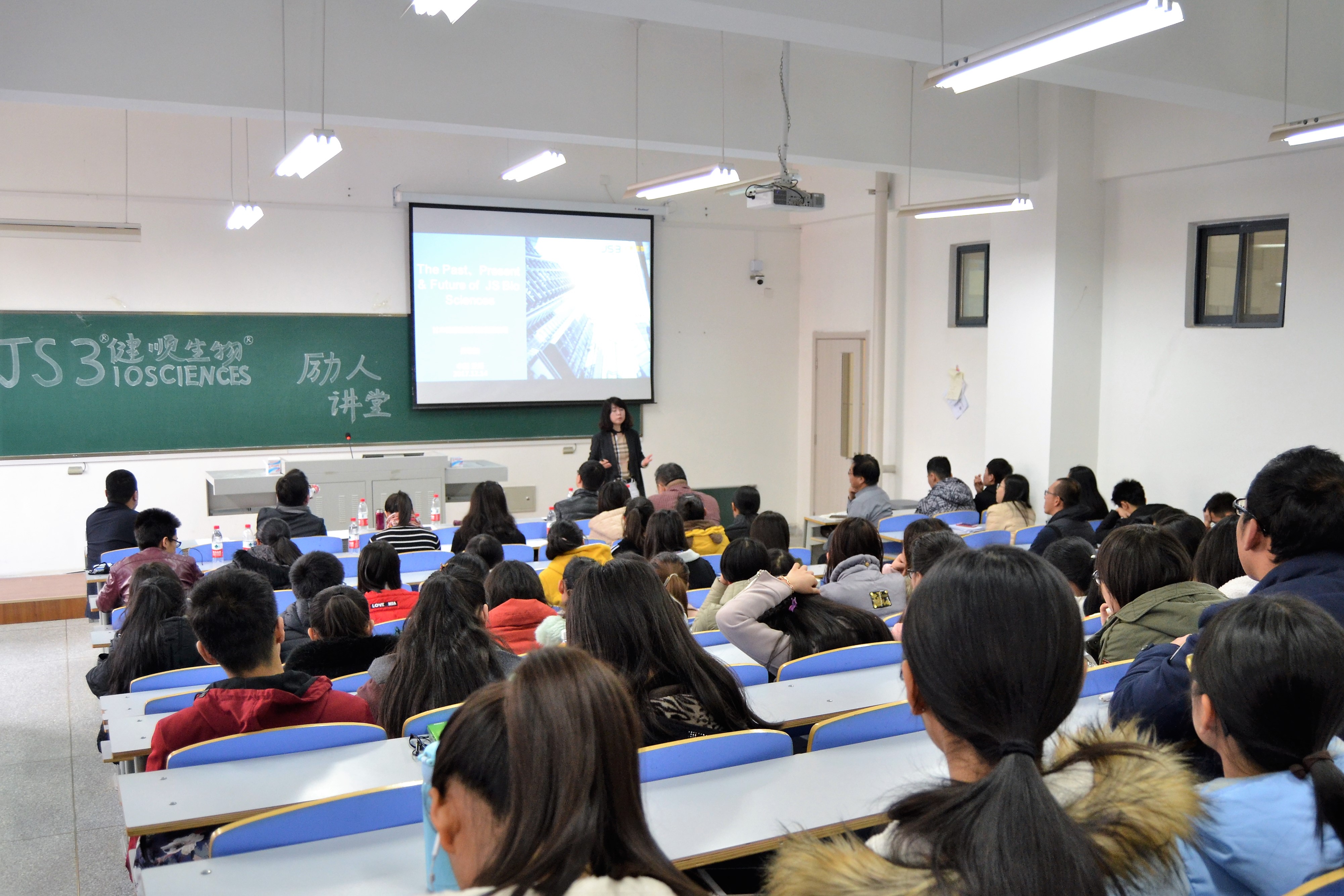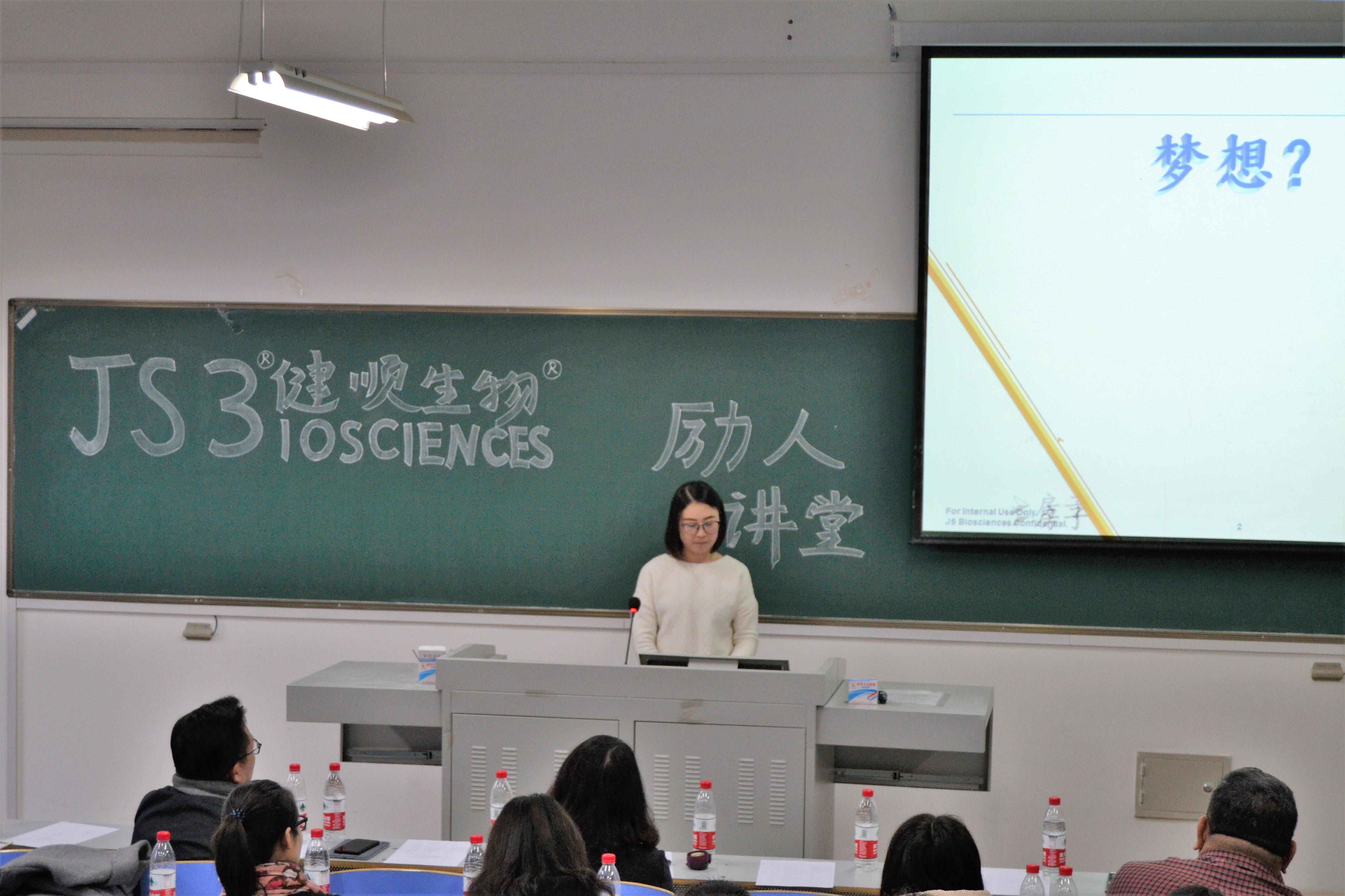 健顺生物努力成为世界一流的细胞培养技术领导者和优质的培养基产品供应商,常务副总经理姜怡如女士,本科就读于金沙城js93线路检测中心外国语公司英语专业,她围绕The Past,Present & Future of JS Biosciences为学弟学妹们全面介绍了甘肃健顺生物科技有限公司的过去,现在和未来,使我们对健顺生物的经营理念、企业文化、发展现状、远景规划有了更加深入的了解,明确了用人单位的人才培养理念、人才发展通道、投入职场的成本与获得报酬的联系。她建议大家在选择职业与工作时要注意杠杆和弹性两个方面,重视自己的知识积淀和能力提升。