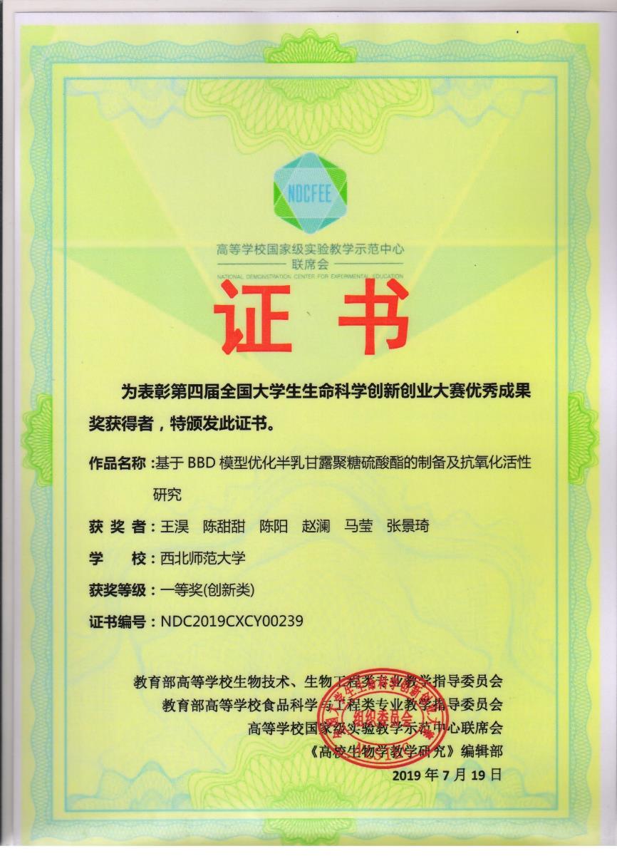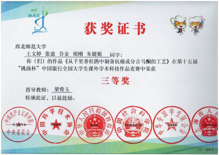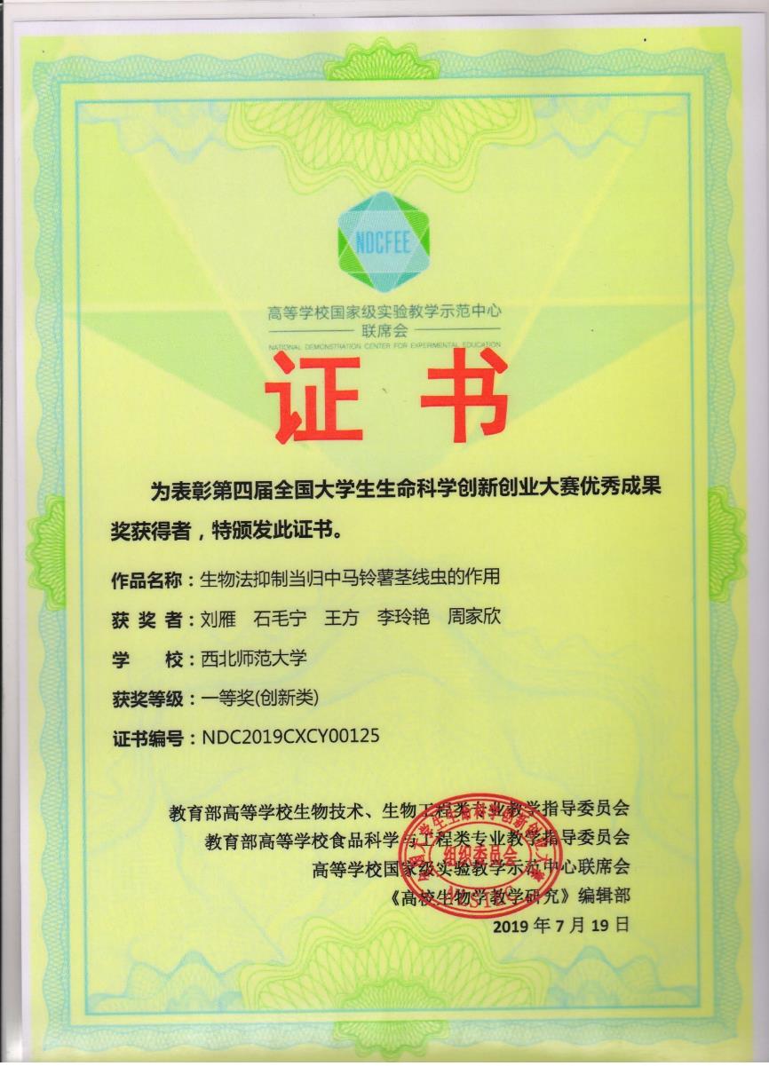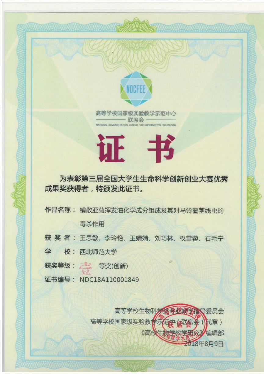 制药工程专业员工主要获奖1、2018~2019年制药工程专业员工就业创业能力提升竞赛活动部分获奖证书(1)全国老员工制药工程设计竞赛(2)全国老员工生命科学创新创业大赛(3)全国老员工生命科学竞赛(4)第四届“互联网+”老员工创新创业大赛甘肃选拔赛(5)全国老员工电子商务“创新、创意及创业”挑战赛甘肃赛区选拔赛(6)“挑战杯”全国老员工课外学术科技作品竞赛20