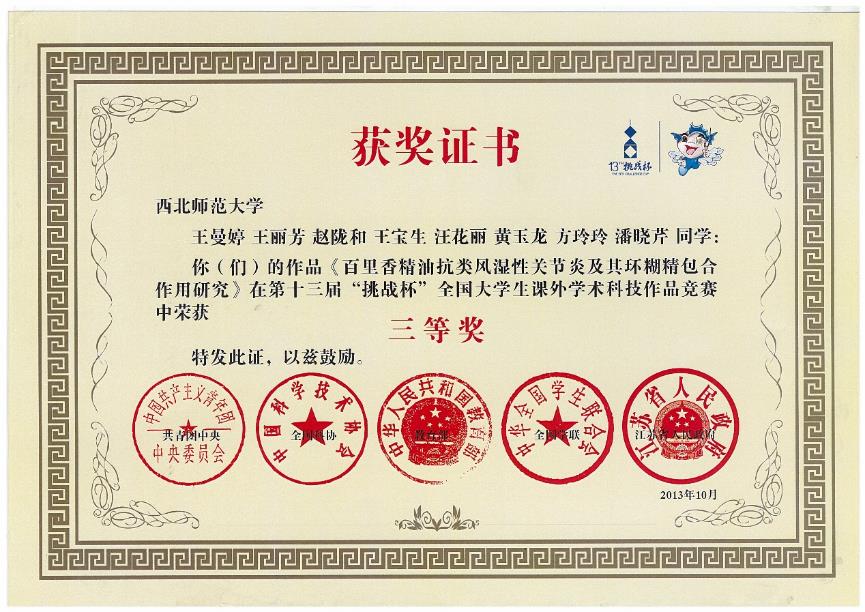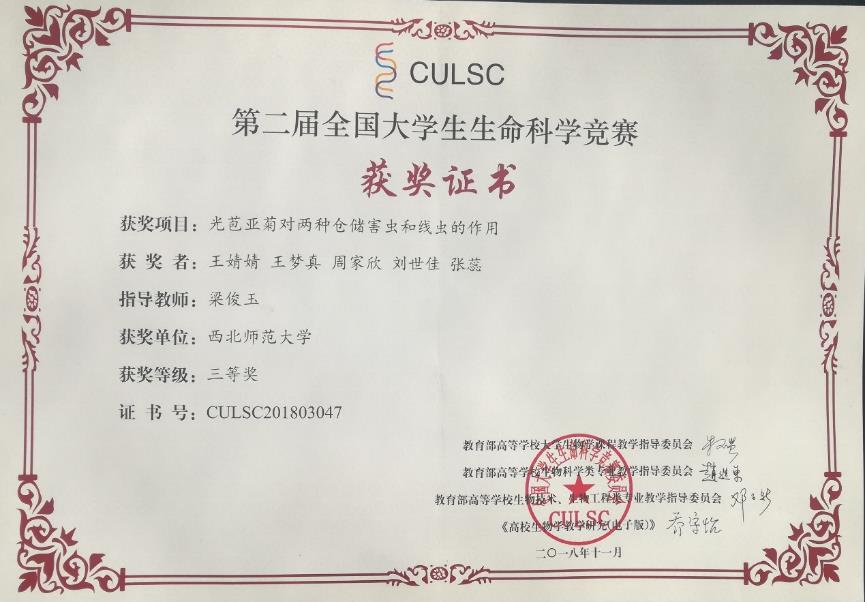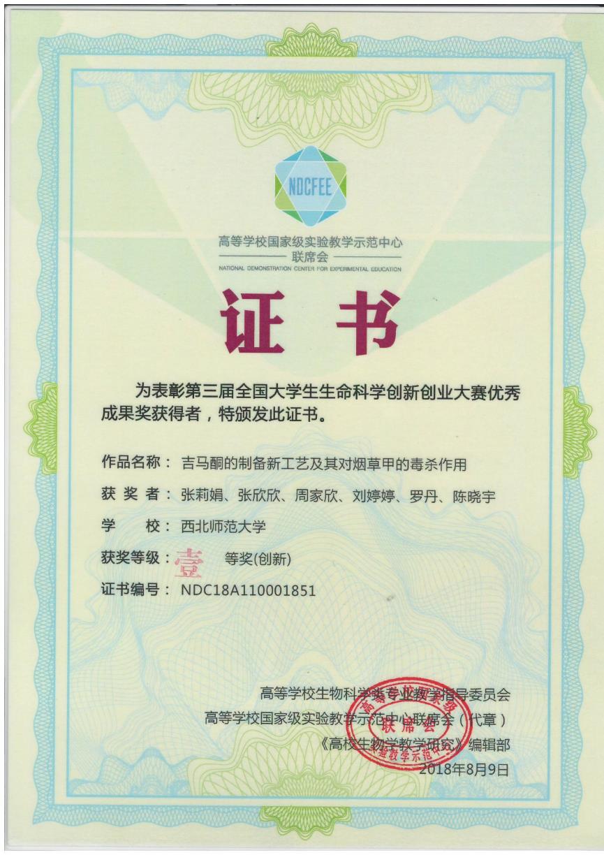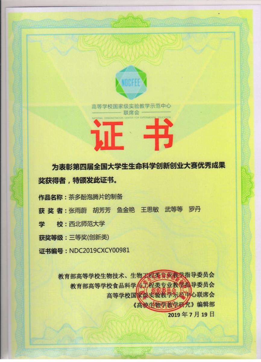 制药工程专业员工主要获奖1、2018~2019年制药工程专业员工就业创业能力提升竞赛活动部分获奖证书(1)全国老员工制药工程设计竞赛(2)全国老员工生命科学创新创业大赛(3)全国老员工生命科学竞赛(4)第四届“互联网+”老员工创新创业大赛甘肃选拔赛(5)全国老员工电子商务“创新、创意及创业”挑战赛甘肃赛区选拔赛(6)“挑战杯”全国老员工课外学术科技作品竞赛20