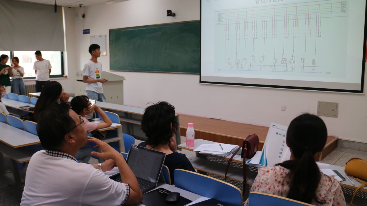 活动开始前,马君义老师向同学们介绍了本次课程设计答辩活动的目的与意义,主持人刘世佳同学宣读了答辩规则和评分要求,之后各答辩队伍采用集体答辩的形式先由队长讲解整体设计思路与特色,队员分工依次讲解其余内容,随后由评委进行提问点评,并根据答辩表现进行评分。