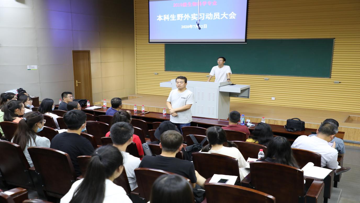 根据公司实习安排,前期实习领导小组对教师和全体实习生开了野外实习动员会,会上领队针对本次野外实习内容、实习地点和注意事项等做了详细的汇报,动植物各位指导老师从各自的专业对员工发言,最后生物科学系张辉主任总结发言,提醒全体师生,高度重视,注意安全,圆满完成这次野外综合实习任务。
