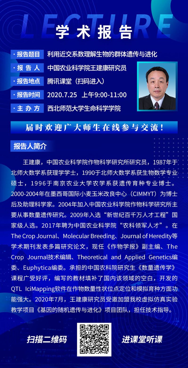 学术报告:利用近交系数理解生物的群体遗传与进化