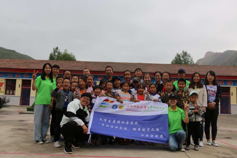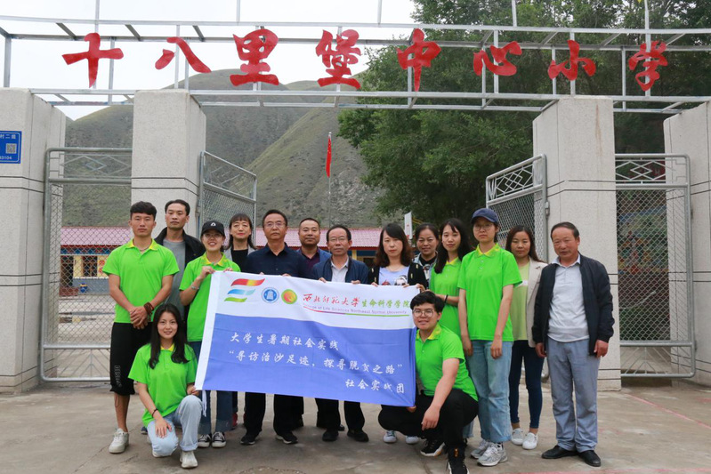 图为团队成员与本校老师在十八里堡小学门口的合影中国青年网通讯员马丽娟摄