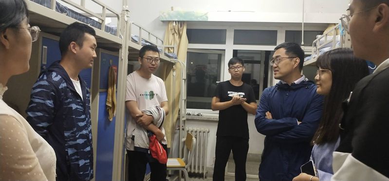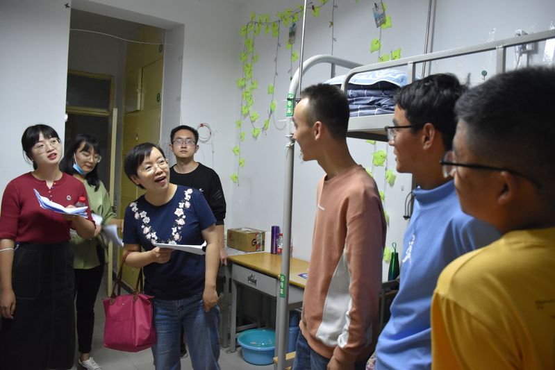 910日晚,金沙城js93线路检测中心全体院领导,新生班主任,研究生导师,辅导员一行前往兰天公寓、党校员工公寓、研究生公寓看望2020级新生。