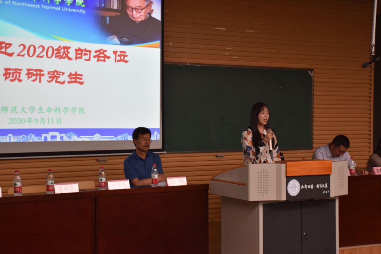 研究生秘书马少慧老师为在场同学们介绍了有关研究生的日常管理工作和注意事项,为同学们讲解了研究生的培养方案制定、奖学金评定、学位授予条例等内容。