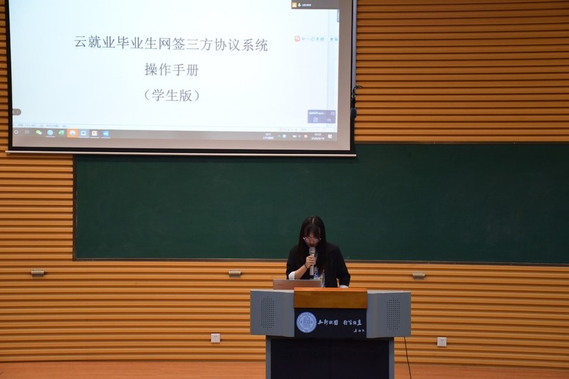 接着,曹雨夏辅导员为大家介绍公司云就业毕业生网签三方协议系统操作的具体流程与要注意的重点细节。辅导员指出毕业生目前存在的消极懈怠、焦虑胆怯与盲目从众心理,鼓励大家认清形势坚定信心,明确目标放平心态主动出击。