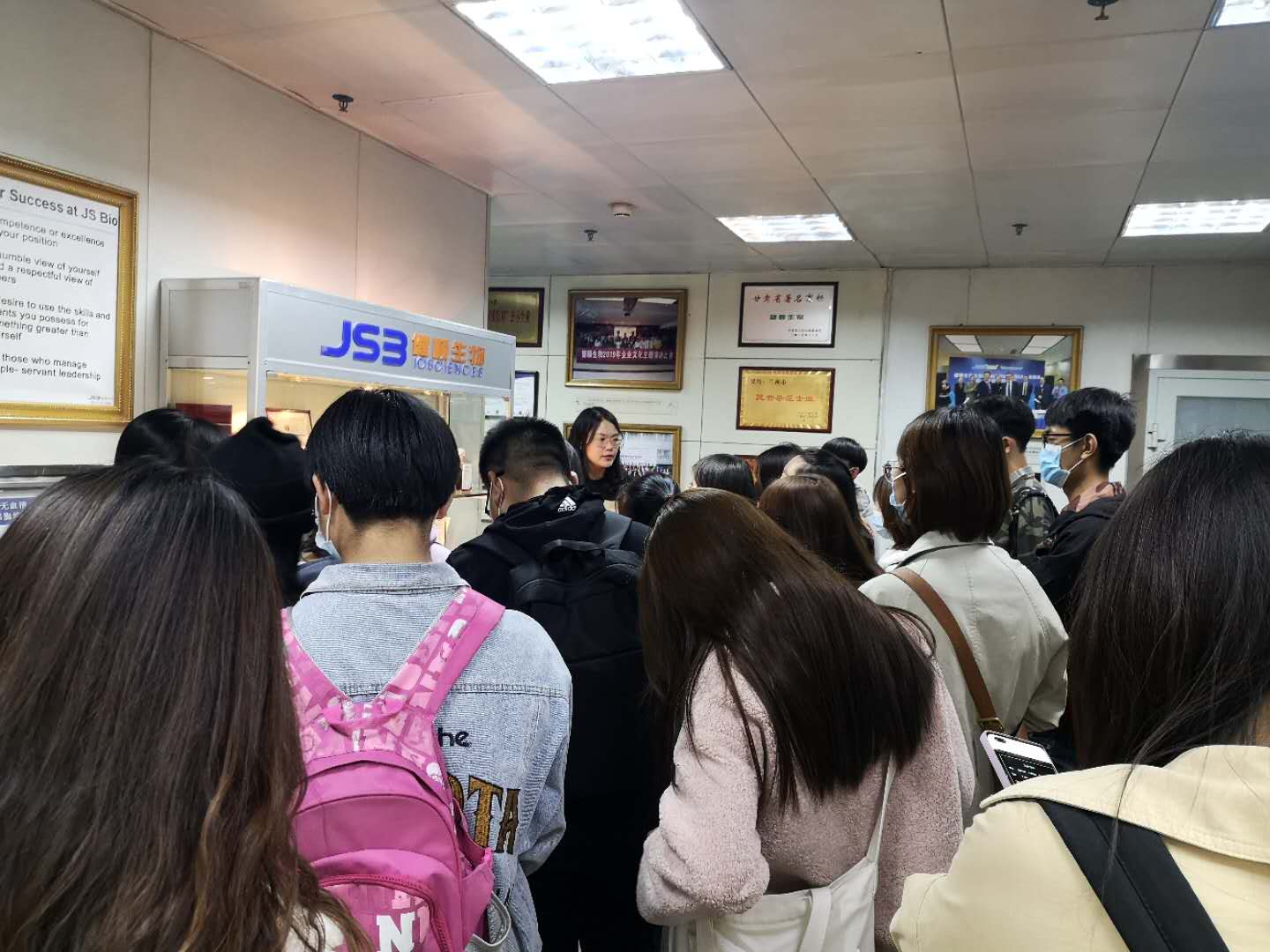 甘肃健顺生物科技有限公司为澳斯康集团旗下子公司。澳斯康集团由美籍华人、生物医药领域知名专家罗顺博士创立,澳斯康生物致力于打造中国生物制药行业集原材料、耗材、制药装备、技术服务及合同生产于一体的领头企业,专注于生物制药生产相关业务(CMC Biomanufacturing)。健顺生物作为业内领先的细胞培养基供应商,拥有强大的自主创新及研发能力,专注无血清、个性化、化学成分界定细胞培养基的研发、生产与销售,同时为客户提供细胞培养工艺开发与放大、培养基配方委托生产等完整的上游解决方案,公司产品和技术服务主要应用于重组蛋白、抗体类药物,人/兽用疫苗及细胞治疗领域。健顺生物位于兰州高新区,总面积7800平方米,包括3000平方米无血清细胞培养基工程实验室和符合cGMP标准的干粉培养基生产车间,是国内首家细胞培养基产品纳入国家食药局监管的培养基生产企业。金沙城js93线路检测中心与甘肃健顺在员工专业见习、实习、就业等方面已建立稳定的合作关系。本次专业见习中,健顺工作人员带领全体师生参观了企业文化走廊、听取了企业创建、发展及目前主营业务的多媒体讲座,大家详细了解到健顺生物及中国生物药物行业的发展现状和前景;同时,带领全体师生进入无血清细胞培养基工程实验室进行了参观和学习,并对干粉培养基生产车间进行了外围参观和学习,大家实物学习了诸如六联体生物反应器、激流式生物反应器等中小型、大型细胞培养生物反应器的仪器构造和运作,以及干粉研磨设备的应用。