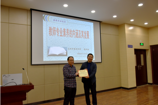 11月18日下午,金沙城js93线路检测中心特邀甘肃省骨干教师、兰州市金城名师、兰州四中正高级生物教师张改相在新校区学术报告厅,为公司学科教育硕士及2020级公费师范生作了题为“教师专业素养的内涵及其发展”专题讲座。讲座由孔维宝副经理主持,并代表公司为张改相老师颁发了教育硕士实践导师聘书。朱学泰副经理,陈学林教授等导师也出席了本次活动。