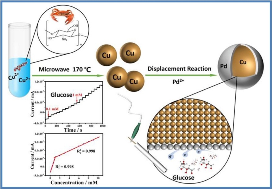 近日,公司王风霞副教授和张继研究员课题组在国际期刊《Carbohydrate Polymers》(2019影响因子:7.182)发表了使用绿色的天然多糖(壳聚糖)合成核壳纳米颗粒Cu@Pd用于葡萄糖检测研究的研究论文,题目为“Green preparation of core-shell Cu@Pd nanoparticles with chitosan for glucosedetection” (Carbohydrate Polymers,2020,247,116647)。