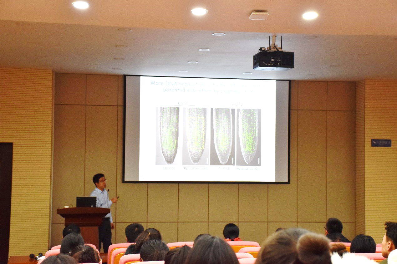 论坛中马妙君老师以题为“土壤种子库在植物群落更新和退化生态系统恢复中的作用”做报告;常金科老师以题为“植物根系向水性生长的分子机制”做报告;吴玉俊老师以题为“Loss of the Common Immune Co-receptor BAK1 Leads to NLR-Dependent Cell Death”做报告;李巧峡老师以题为“紫花地丁两型花进化发育的分子机制研究”;樊宝丽老师以题为“西北干旱区植物的适应及资源利用策略研究”做学术报告。五位讲者分享了在各自领域的最新进展和发现,报告后与参会师生进行了积极讨论和交流。五位讲者对科研工作的独立思考、热爱、坚持和努力,让与会师生深受触动和启发。