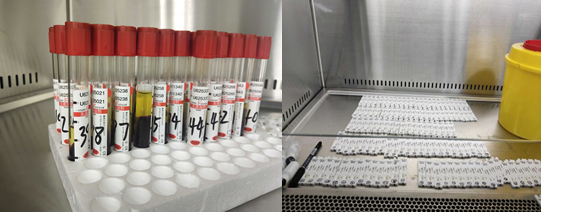 目前,国内新冠疫情已经得到有效控制,但境外输入患者及无症状患者时有发生。2020年9月、10月、12月,云南瑞丽、山东青岛、辽宁大连等地出现新冠疫情病例,疫情防控警报再次拉响。在广州凯普生物科技有限公司的综合调度下,米全凤、武等等、潘玉娟、韩慧贤、毛赋玮、李菊梅、马雪、苏增智等8位同学于9月14日前往云南昆明支援新冠病毒的检测,其中4人整理采集的样本,并对样本进行梳理编号和复核,4人将处理好的样本进行DNA提取、加样和检测。之后,米全凤、潘玉娟、韩慧贤、毛赋玮4位同学又于10月16日前往山东济南支援新冠病毒的检测。在新冠病毒的检测过程中,同学们全力以赴,一丝不苟,兢业认真,精力高度集中,一旦发现疑似阳性样本,定会反复核查直到结果确认。在每天紧张忙碌的工作中,尽管防护服里的衣服被汗水浸透、耳朵被口罩勒破、鼻子被护目镜压红……,但没有一个人说累,没有一个人退缩,每个人眼里都是坚定,经过日夜奋战,实习同学与公司其他同事一同交出了筛查十多份样本的满意答卷。