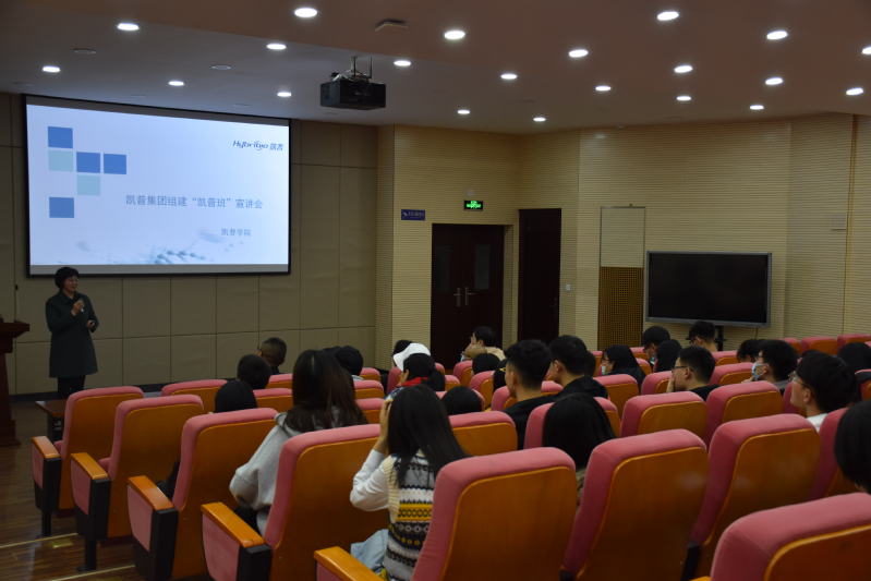 宣讲会上,凯普生物公司招聘负责人为同学们详细的介绍了公司的工作和生活场景、实习岗位以及“凯普班”项目。公司2017级曾有6名同学到该公司参加实习,在此次宣讲会上分享了自己的实习经历。2017级生物技术班毛赋伟同学说道:“公司企业文化很好,大家上班时间都在认真工作,休息时间到处都充满着欢声笑语。”制药工程班米全凤同学说:“凯普公司为我们提供了一个很好的就业平台,它尊重每一个认真工作的人,肯定你的每一次付出,是一个具有良好发展前景的工作单位,而且作为上市公司,在很多城市都有分公司,让我们有很大的选择性。”随后,针对同学们感兴趣的问题,如工作内容、工资福利等方面,公司负责人都一一进行了解答,让同学们对凯普公司有了更深入的了解。