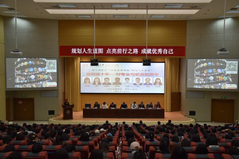 八位员工结合自身就业及职场经历,与同学们分享了自己的专业与职业发展。代立超详细介绍了自己的职业发展与近年来医药行业的就业情况。面对现场同学的提问:“毕业时如何选择适合自己的工作?”代立超为同学们进行解答,每个人首先要了解自己所学的专业以及以后的就业方向,尽早开始职业规划,利用课余时间不断去尝试、了解自己以后准备从事的工作,使自己有更加清晰地定位。郭印乾分享了将兴趣爱好转变为自我职业的历程,他给在场同学们寄语:“机会是留给有准备的人的,下定决心去做一件事情之后,就用心去做,将其做到极致。”张文在分享时提到:“我的工作学习就是由一个个flag组成的,在不同的阶段为自己定下不同的目标,去努力实现它,正是因为这一个个目标,我变得更加自律,懂得需要什么,从事了喜欢的工作和找到了真正的自己。”海洋就“考研还是就业”的两难问题为同学们进行了解疑,她说:“考研的目的不是去得到一个学历,而是目前的状况无法达到你的要求,所以选择继续去深造”。