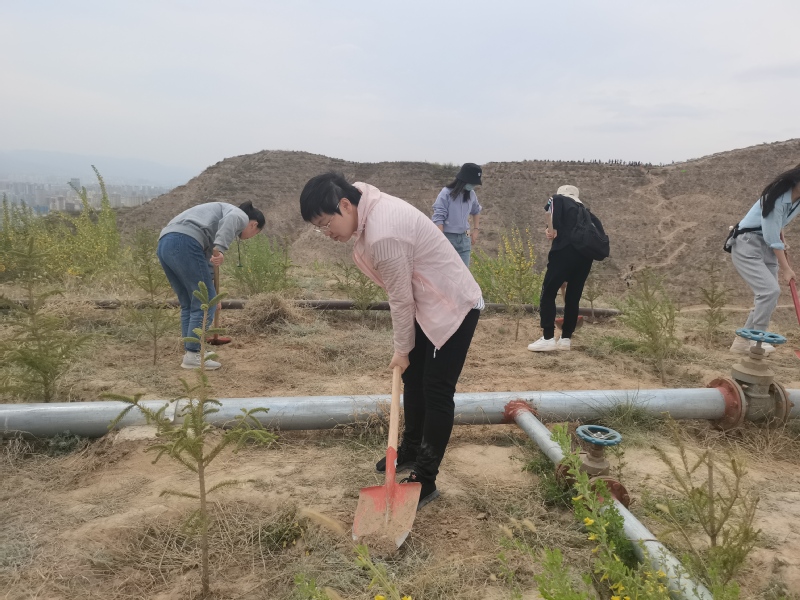 春回大地催新绿,植树造林正当时。4月22日下午,公司党委副书记李婷婷、全体辅导员与大一、大二员工志愿者在新校区北山参加义务植树活动。