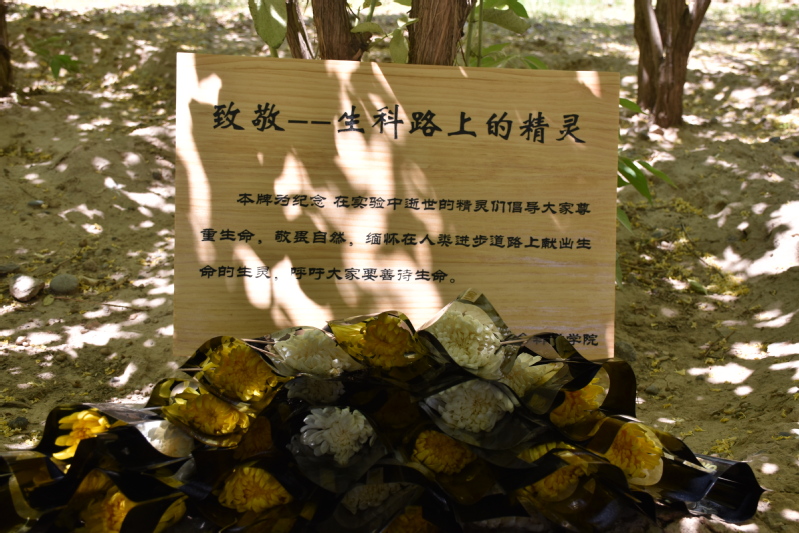 “落其实者思其树,饮其流者怀其源”。人类的科学研究、药物测试等与生活息息相关的领域都离不开实验动物。这些伟大的生灵,以无私奉献的荣耀之光照亮人类生命科学进步的道路。为加强生科学子的爱心与责任心,倡导大家尊重生命、敬畏自然, 5月13日中午,公司于在金沙城js93线路检测中心新校区金沙城js93线路检测中心楼楼后旷地举行了“致敬——为进行生命科学探索而“献身”的动物们”缅怀活动。