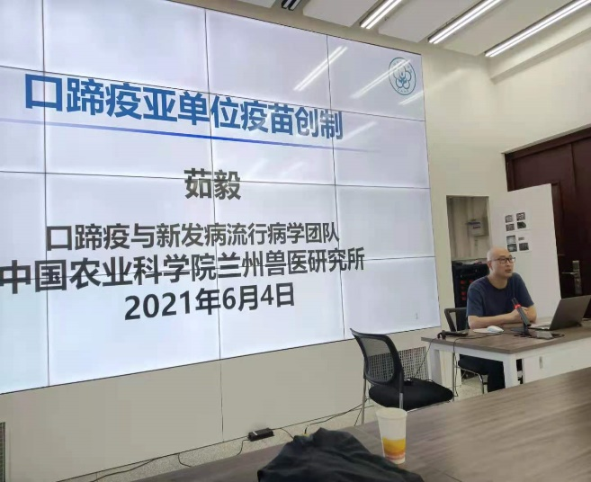 2021年6月4日下午,应金沙城js93线路检测中心的邀请,中国农业科公司兰州兽医研究所李丹副研究员和茹毅助理研究员分别为公司师生作了题为《口蹄疫病毒抑制G3BP1介导的RIG-I信号通路的机制》和《口蹄疫亚单位疫苗创制》学术报告,近50名师生听取了报告。