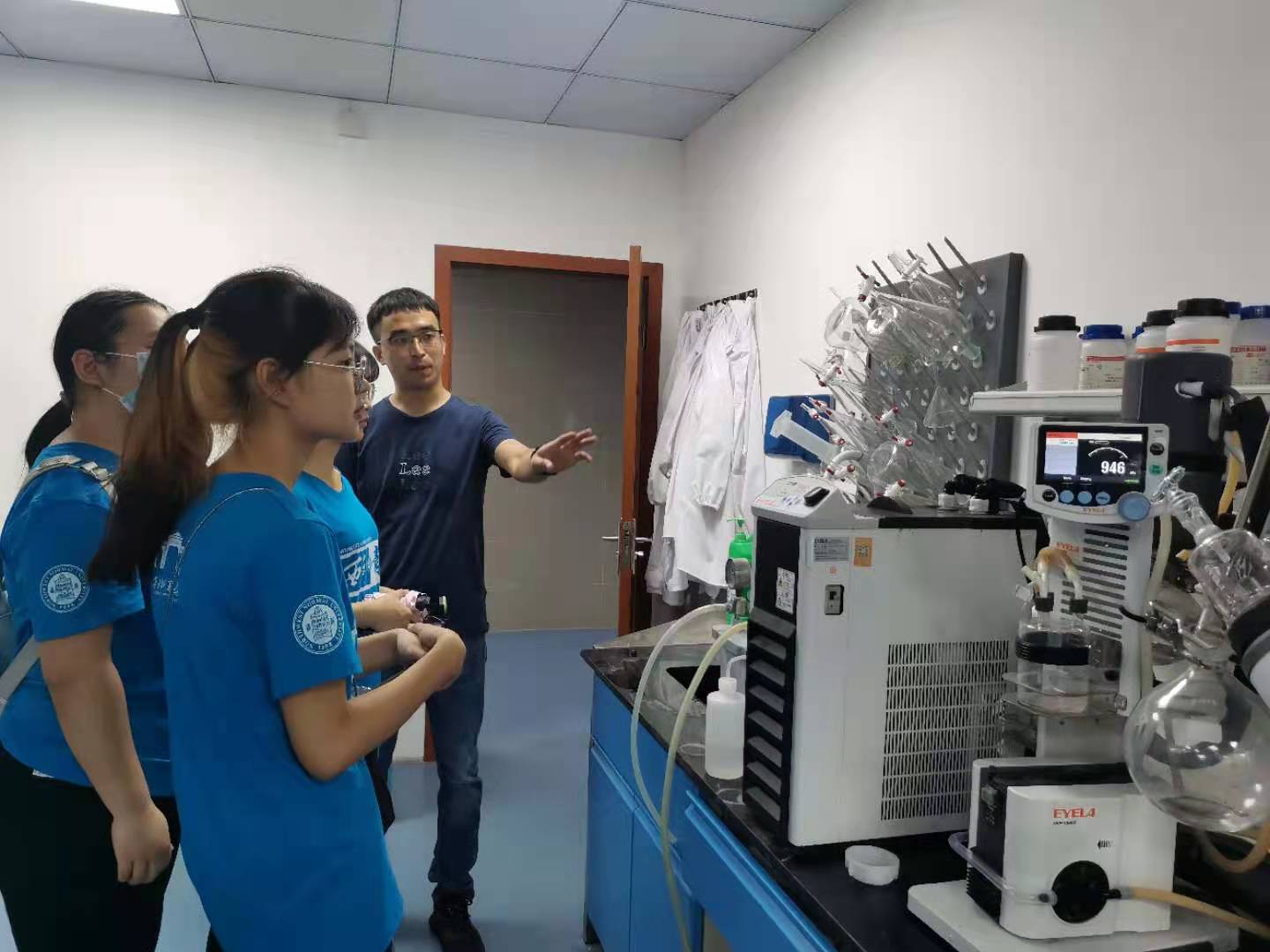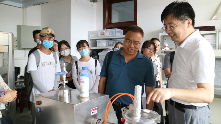 图为马君义教授和实践团成员参观倍特药业研发车间