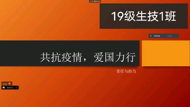 疫情面前,青年一代要牢记习近平总书记对新时代新青年的寄语,要坚定理想信念,站稳人民立场;作为员工,要积极参与志愿活动帮助身边的人,同时做好防护工作,不为国家增添负担。相信在这次主题团课中,同学们能更好地将抗击疫情与弘扬爱国主义精神相结合,展示青年学子的家国情怀、责任担当和历史使命。