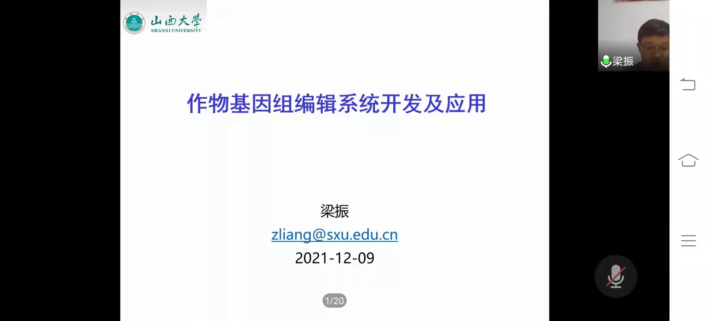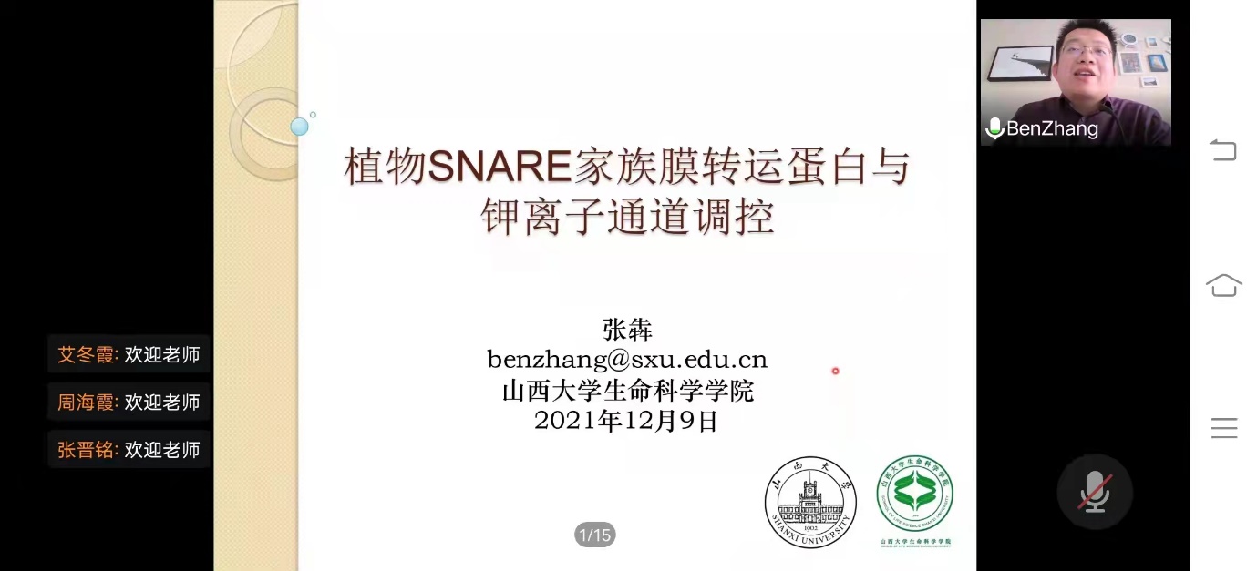 12月9日下午,应金沙城js93线路检测中心微生物资源与技术研究所邀请,山西老员工命科学公司张犇教授和梁振教授为公司师生做了线上学术报告。张犇教授做了题为“植物SNARE家族膜转运蛋白与钾离子通道调控”的专题报告,围绕植物膜转运与蛋白相互作用深入浅出地介绍了近期研究进展以及后续以谷子为对象的研究方向。梁振教授做了题为“作物基因编辑系统开发及应用”的专题报告,围绕‘高效新型植物基因编辑技术体系的开发及利用’、‘农作物重要农艺性状的改良’、‘CRISPR/Cas9技术在山西特色种质资源(谷子)改良中的应用’三个方向作了详细介绍。本次报告由李建真教授主持,线上超过150名师生参加了此次报告会。报告会后,公司师生与两位教授就报告中的相关科学问题进行了深入交流。