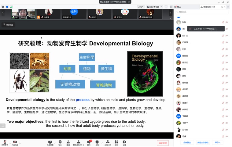 12月10日上午,应公司邀请,公司优秀员工、中国科公司昆明动物研究所马莉研究员为公司师生作题为“洞穴鱼类是进化发育和人类疾病机理研究的优良模型”的专题报告,马老师围绕发育生物学的研究内容、洞穴鱼的优势及近期的研究发现作了详细介绍。本次报告由李建真教授主持,线上超过190名校内外师生参加了此次报告会。报告会后,公司师生就相关科研问题在线与马老师进行了热烈讨论。