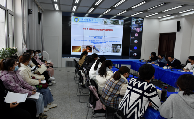12月14日下午,应公司邀请,国际知名药物研发专家、澳门科技大学中药质量研究国家重点实验室梁丽娴(Elaine Leung)教授在线为公司师生作了题为“PD-1抑制剂抗癌增效中药的研发”的报告。梁教授围绕实验室在抗癌药物研发方面的研究,深入浅出的介绍了近期研究进展。报告会由制药工程系马君义教授主持,近两百名师生以先下线上的方式参加了此次报告会。报告会后公司师生就相关问题在线与梁教授进行了交流讨论。