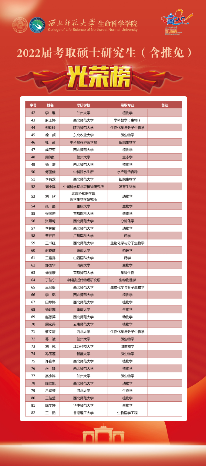 2022年全国硕士研究生招生考试录取工作结束,公司本科生考研率再创佳绩。据统计,今年公司本科生136人参加硕士研究生入学考试,报考率高达62.67%。共有82人进入中国科公司大学、同济大学、重庆大学、兰州大学等国内知名院校继续攻读硕士研究生,考研率达37.79%,其中2022届生物科学2班的考研率达57.58%,实现了逐年增长的良好态势,实现了公司考研工作的新突破。疫情期间,公司充分发挥力量,通过线上方式为考研员工提供复试指导,复试场地,鼓励同学们以积极向上的心态和精神面貌参与复试面试及调剂。